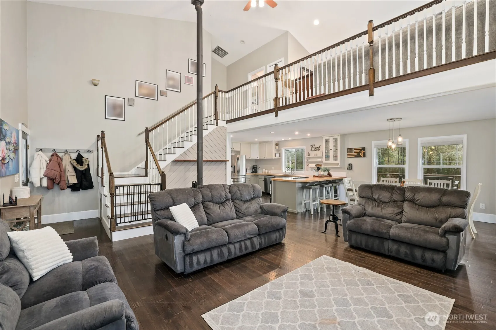 Welcome home to this stunning 8 acre property offering a secluded country feel just minutes from town. The home features an open concept living space with vaulted ceilings and abundant natural light, spacious kitchen with walk-in pantry, and main floor primary suite with soaking tub and walk-in closet. Upstairs, a loft/bonus space and two more bedrooms. The detached garage/shop has heating and cooling to enjoy your hobbies year-round, and the finished space upstairs is perfect for an office or guest suite with a view of Mt. Rainier! Garden space, fruit trees, multiple outbuildings. New roof, exterior paint, and too many upgrades to list here. Ask your agent for a full list of property features & information about a great buyer incentive!