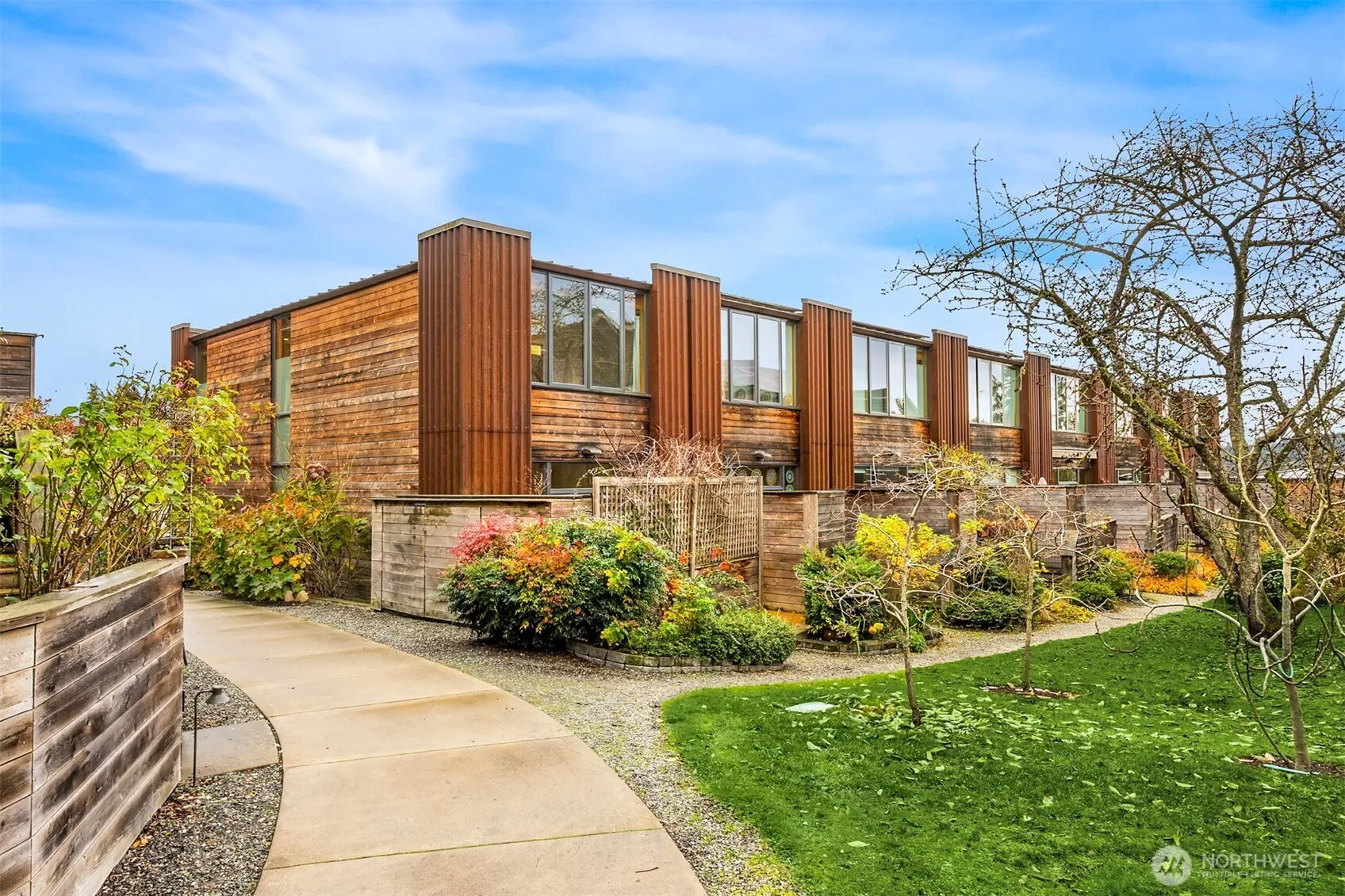 Wonderful two-bedroom, end unit townhome in Grow Community, designed and built with sustainability in mind. A covered front porch overlooks the Grove, landscaped with Northwest native plants. The home is light and bright with ample windows and thoughtful lighting design. Green features such as an induction range, bamboo flooring and wool carpeting complement the home. Two second floor bedrooms both have ensuite bathrooms and lovely views. Enjoy the west-facing, private deck for relaxation and container gardening. The underground, private parking connects directly to the home and contains a large storage closet. Grow Community is centrally located on the west end of town, with excellent proximity to shopping, amenities and the ferry.