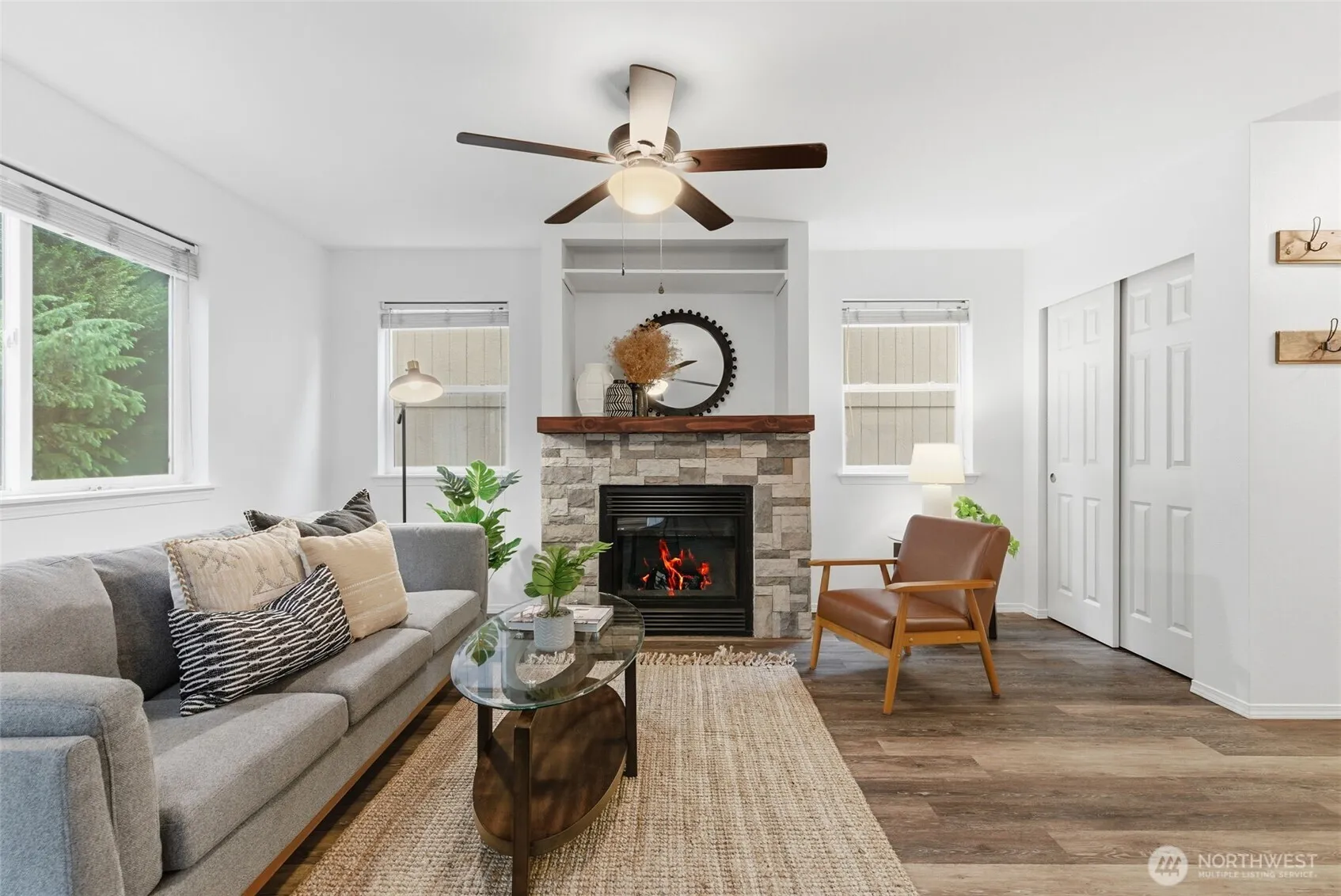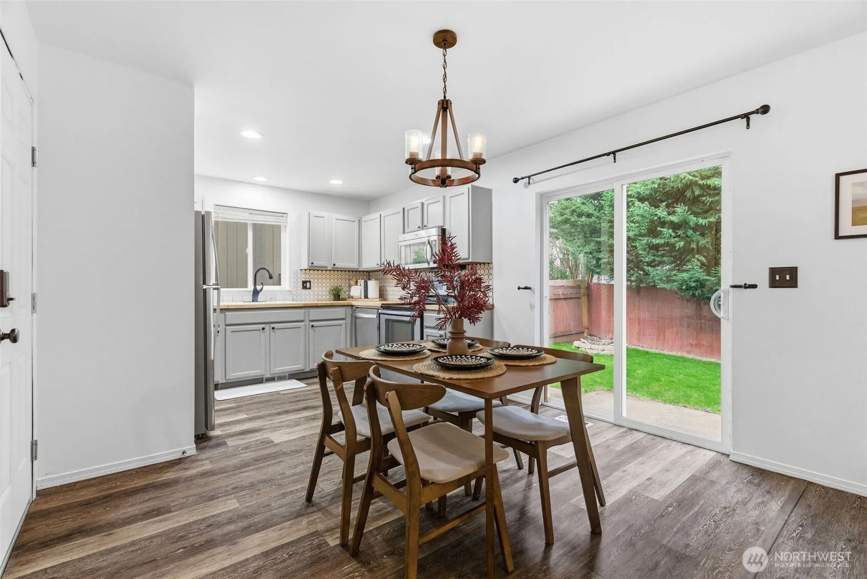 Adorable, affordable home in the desirable Central Kitsap School District! Light and bright and thoughtfully designed open floorplan, with open concept living downstairs; perfect for comfortable everyday living. Three bedrooms upstairs, including spacious Primary Suite with large walk-in closet and attached bath. Convenient and chic luxury vinyl plank throughout the home for easy and durable living. Sit on the back deck and overlook the fully fenced backyard, while also admiring the scenery of the greenbelt on this premium lot. Just a hop, skip and jump away from the super sweet neighborhood park. Easy commute to Bangor or Bremerton base, and just minutes from Silverdale’s shopping and restaurants.