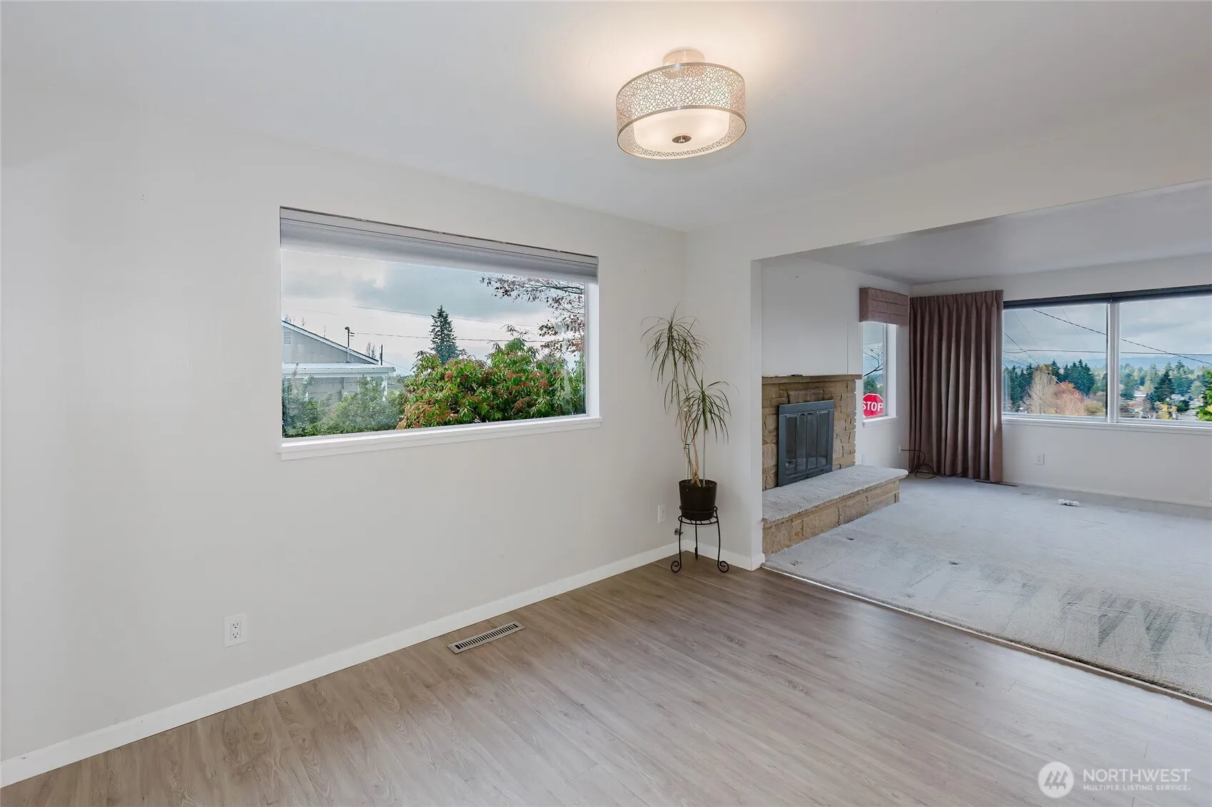 Located in East Bremerton, this 2,592 sq ft home features 3 bedrooms & 1.5 baths on a quiet dead-end street. The beautiful, remodeled kitchen, newer roof & windows enhance its appeal. Enjoy remote-controlled curtains, a remote gas fireplace in the living room & a cozy wood fireplace in the basement family room. The huge, fully fenced backyard includes a large shed & a spacious covered patio, perfect for entertaining. With ample parking, this home is perfect for gatherings while you enjoy the breathtaking sunset views of the Olympic Mountains. Fred Meyer “one-stop shopping” is nearby & the Puget Sound access Illahee State Park is only 3 minutes away, with PSNS, Bremerton/Seattle ferry connections & downtown Bremerton within 10 minutes.