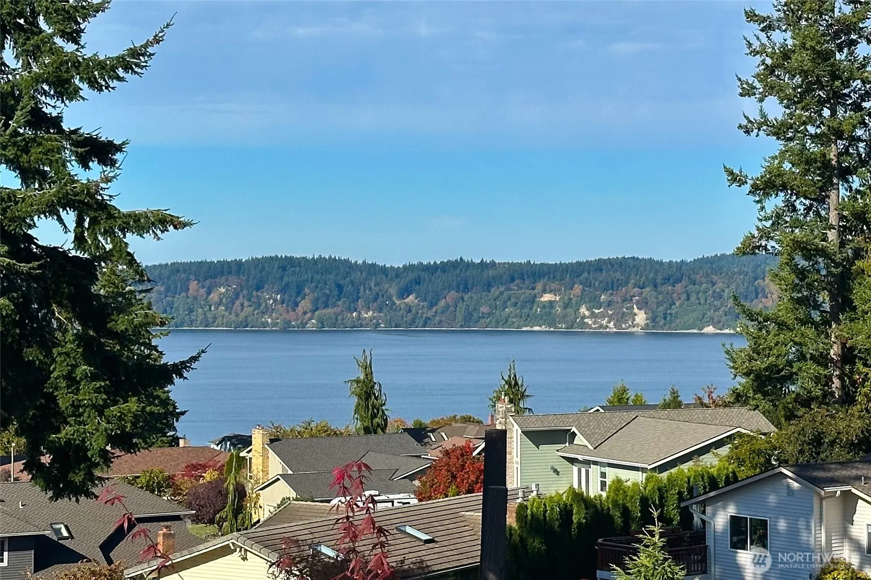 Amazing Mukilteo view home with fabulous floor plan designed to maximize vistas of the water & mountains. Expansive main-floor primary suite with vaulted ceilings, 5-piece bath and view deck. Updated kitchen w/ quartz counters, gas top, double oven, new stainless appliances. Main floor also features oak floors, two fireplaces & a powder room. The lower level features 3 additional bedrooms, including a 2nd primary suite, remodeled bathroom, large bonus rec room. Lower potential kitchenette with addition of appliances, perfect for an ADU. Large 3-car garage with shop bench. Huge hidden stand-up storage in the basement, not included in the SF. New 2024 presidential roof, new gas furnace & central A/C. Quiet private street of just 8 homes.