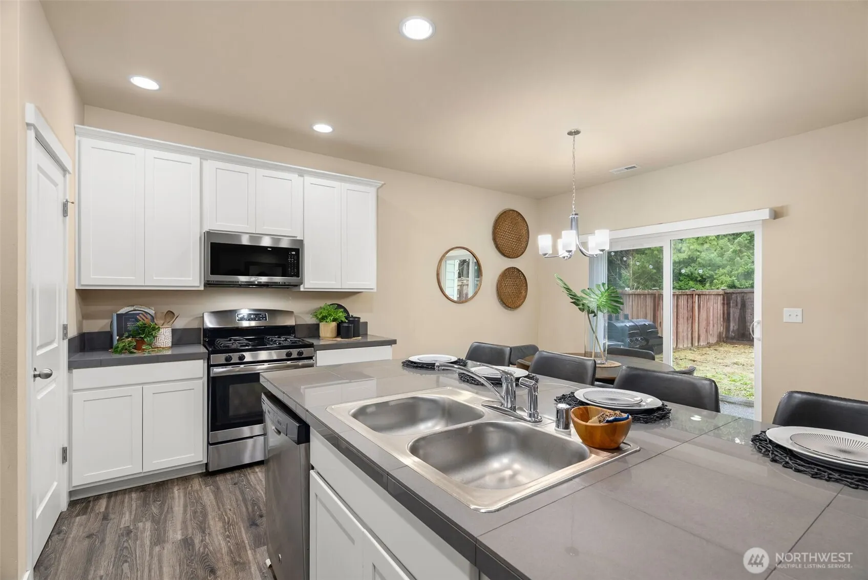 Beautiful, 4 bedroom home in the coveted Central Kitsap School District! With over 2,200 sf, this property features a flowing open floor plan. Perfectly positioned kitchen is the heart of the home with chic white cabinetry & a walk in pantry, & opens to the dining & living room. French doors lead you to the spacious Primary Suite with attached bath & 2 walk-in closets! Spoil yourself in the spa-like bath, with double vanity & soaking tub. Designed with flexibility & convenience in mind with three additional bedrooms, full bath & convenient laundry room upstairs. Enjoy your weekend BBQ on the back patio, overlooking the fully fenced yard. Super easy to Bangor base or the shipyard, & minutes to Silverdale’s finest restaurants and shopping!