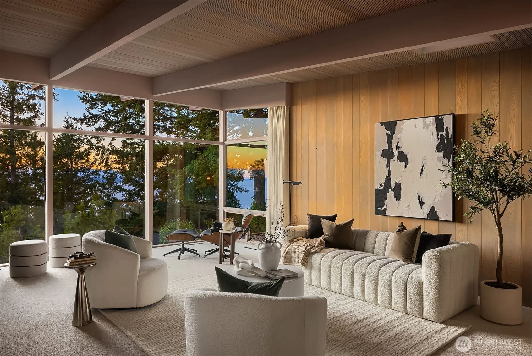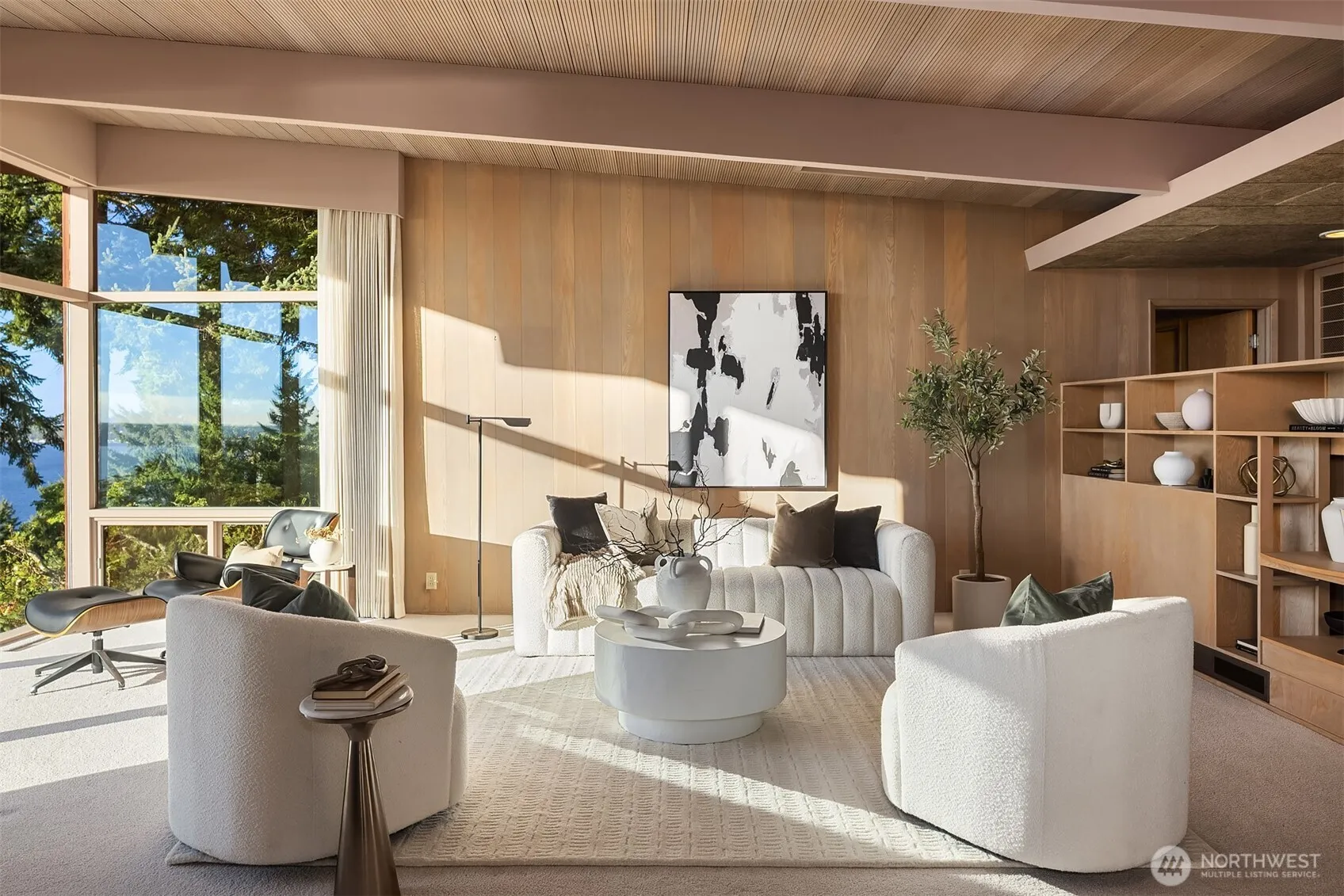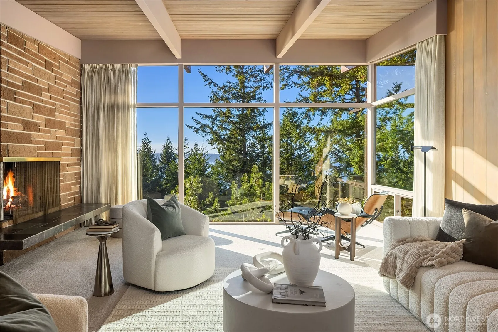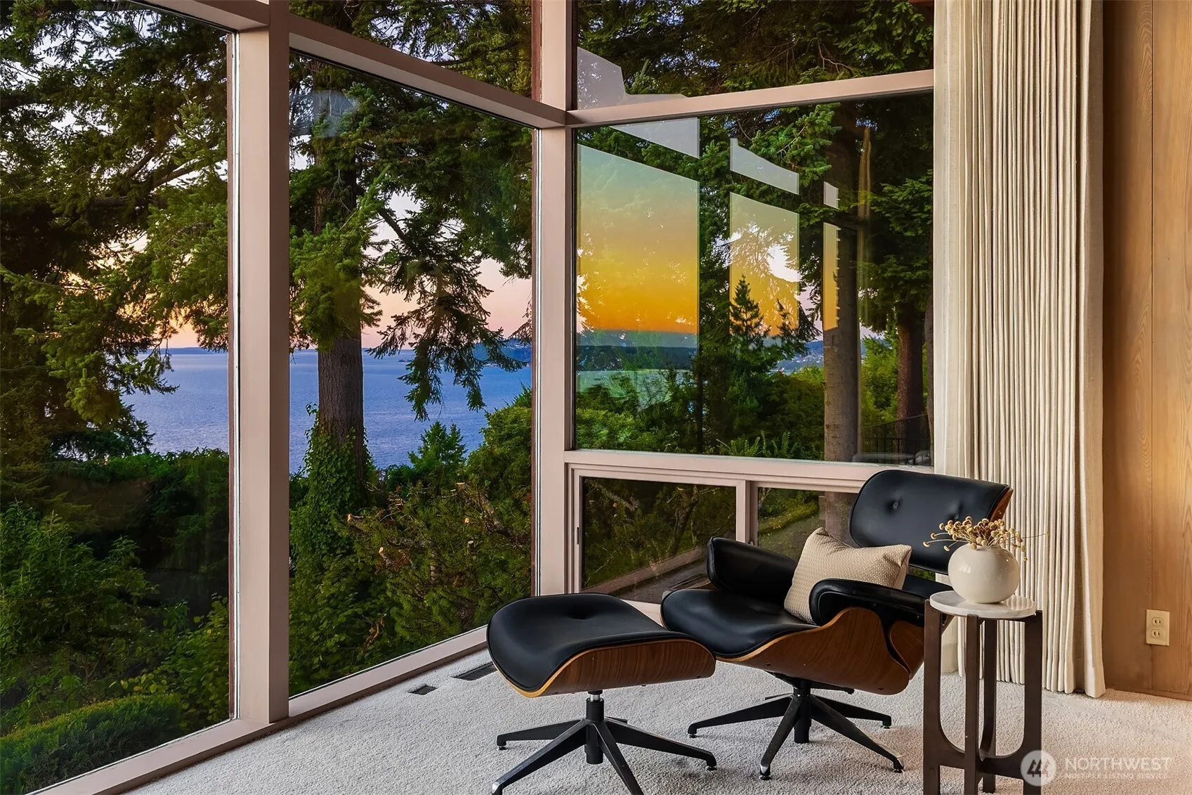 Welcome to Three Tree Point heights w/this Mid Century “Time Capsule” that will transport you to a time of glorious craftsmanship. Designed by & for Modernist Seattle architect Arden Steinhart as his personal residence, the home is a pure gem blending lines & materials to its natural environment. Step in & imagine life in the golden 50s perfectly preserved: slate, cork, redwood & straw. Walls of glass frame the captivating views: orange sunsets, deep blue Sound & lush PNW vegetation. Dutch & sliding doors flow into private patios & lawns. Open floor plan, spacious rooms & main level living + 1240 sq ft of raw space ready for your vision. An iconic sanctuary only min to trail, public beaches & a short drive to sweet Olde Burien + airport.