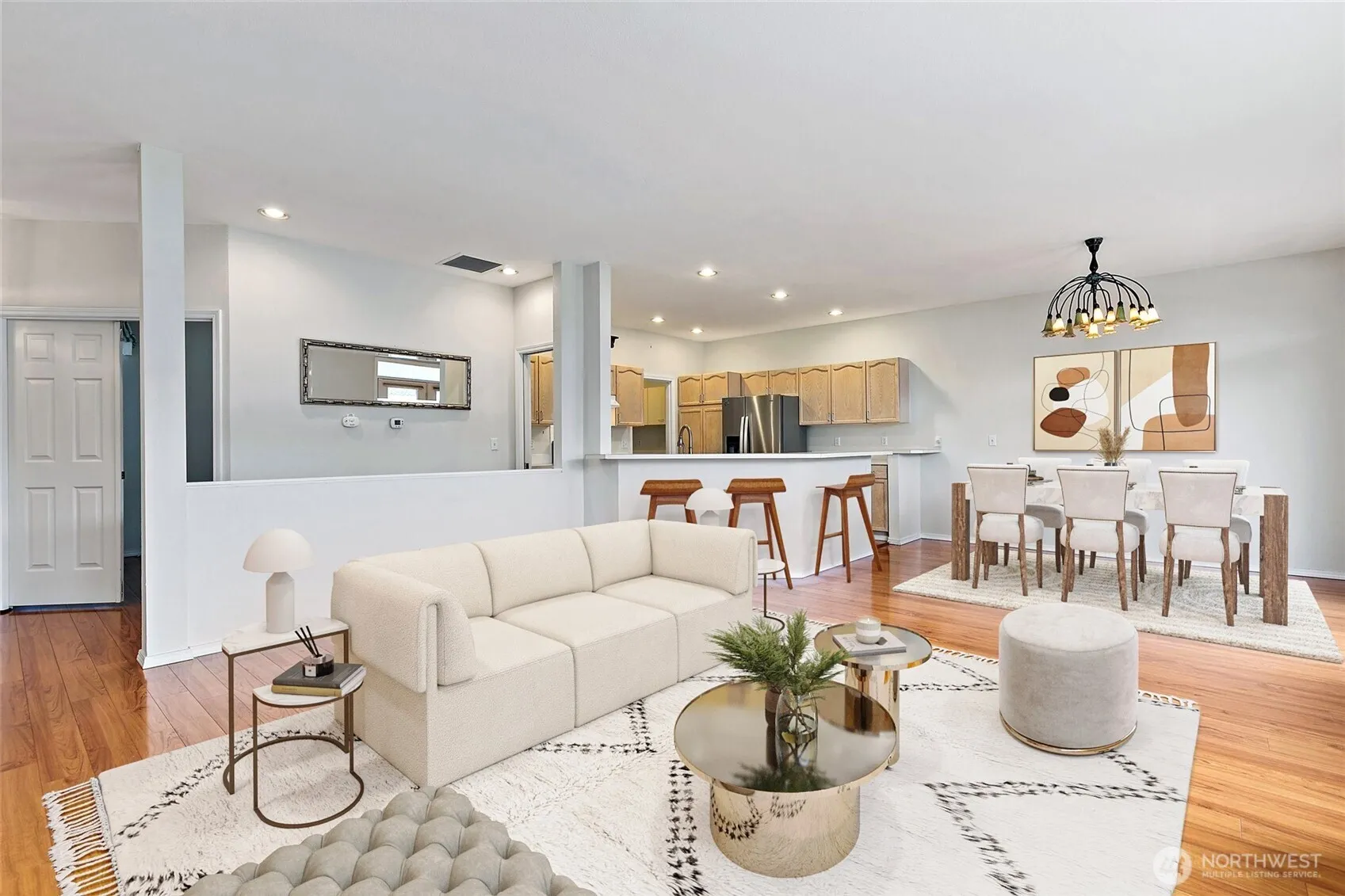 Fantastic one-level corner-lot home in the highly desired, gated community of Chambers Gardens! Step inside to bright, open living spaces featuring large picture windows that flood the home with natural light, an inviting gas fireplace, & an open-concept layout connecting the living, kitchen, & dining areas. The dining room opens directly to the private garden patio—perfect for relaxing or entertaining. The spacious primary bedroom includes a double vanity & soaking tub. Two additional bedrooms & a second full bath offer plenty of flexibility for guests, work, or hobbies. A large two-car garage provides excellent storage. All of this in an ideal location with an easy commute & just minutes from restaurants, shopping, schools, and more!