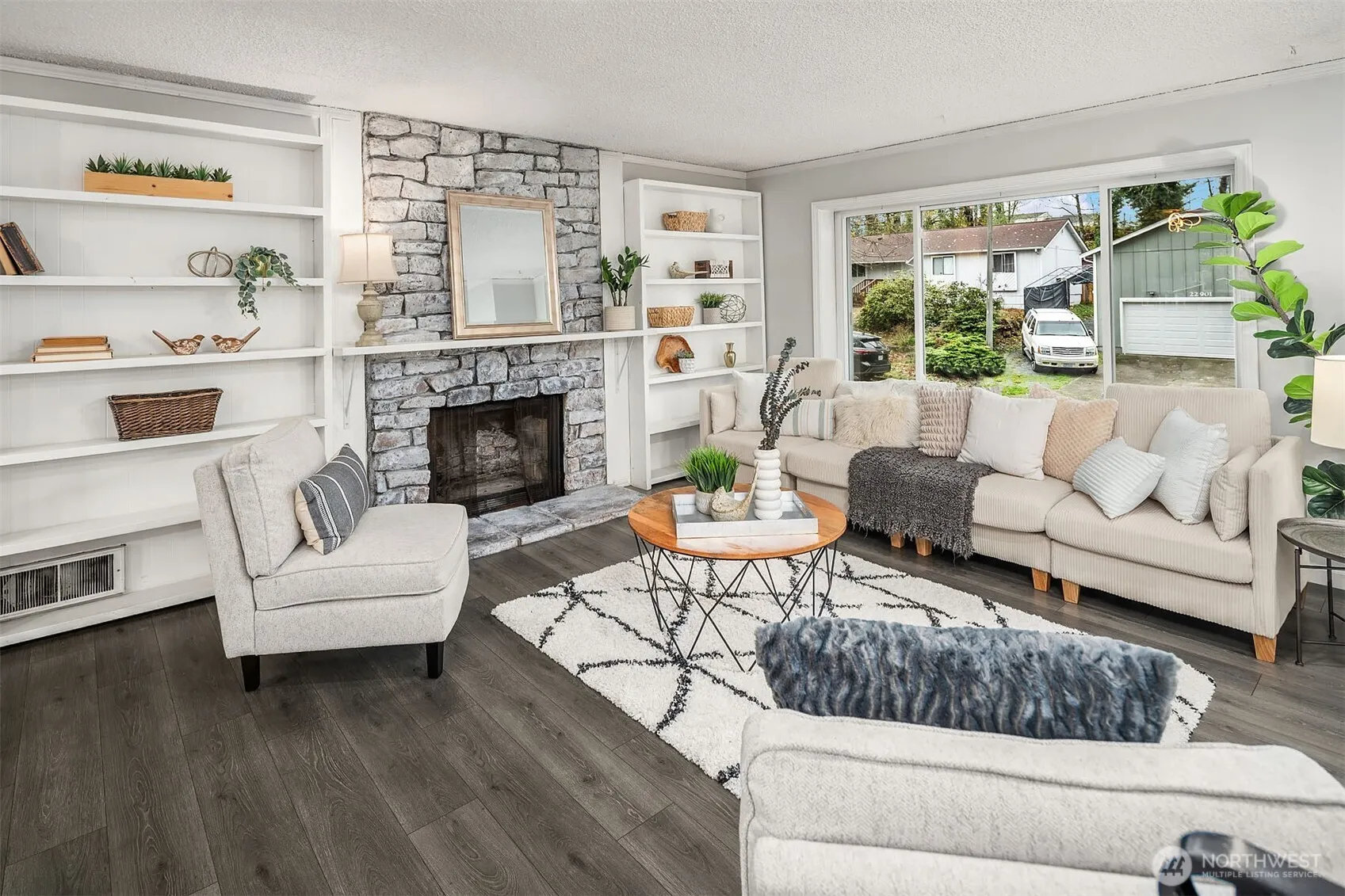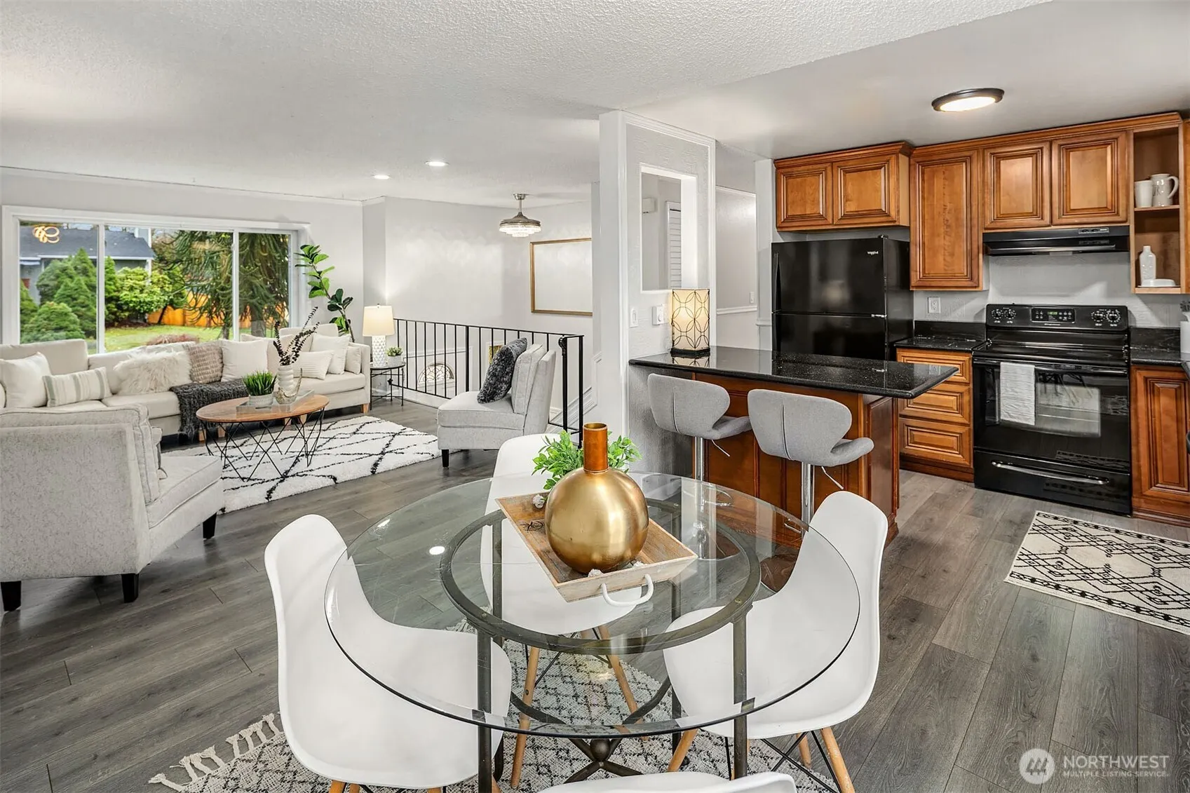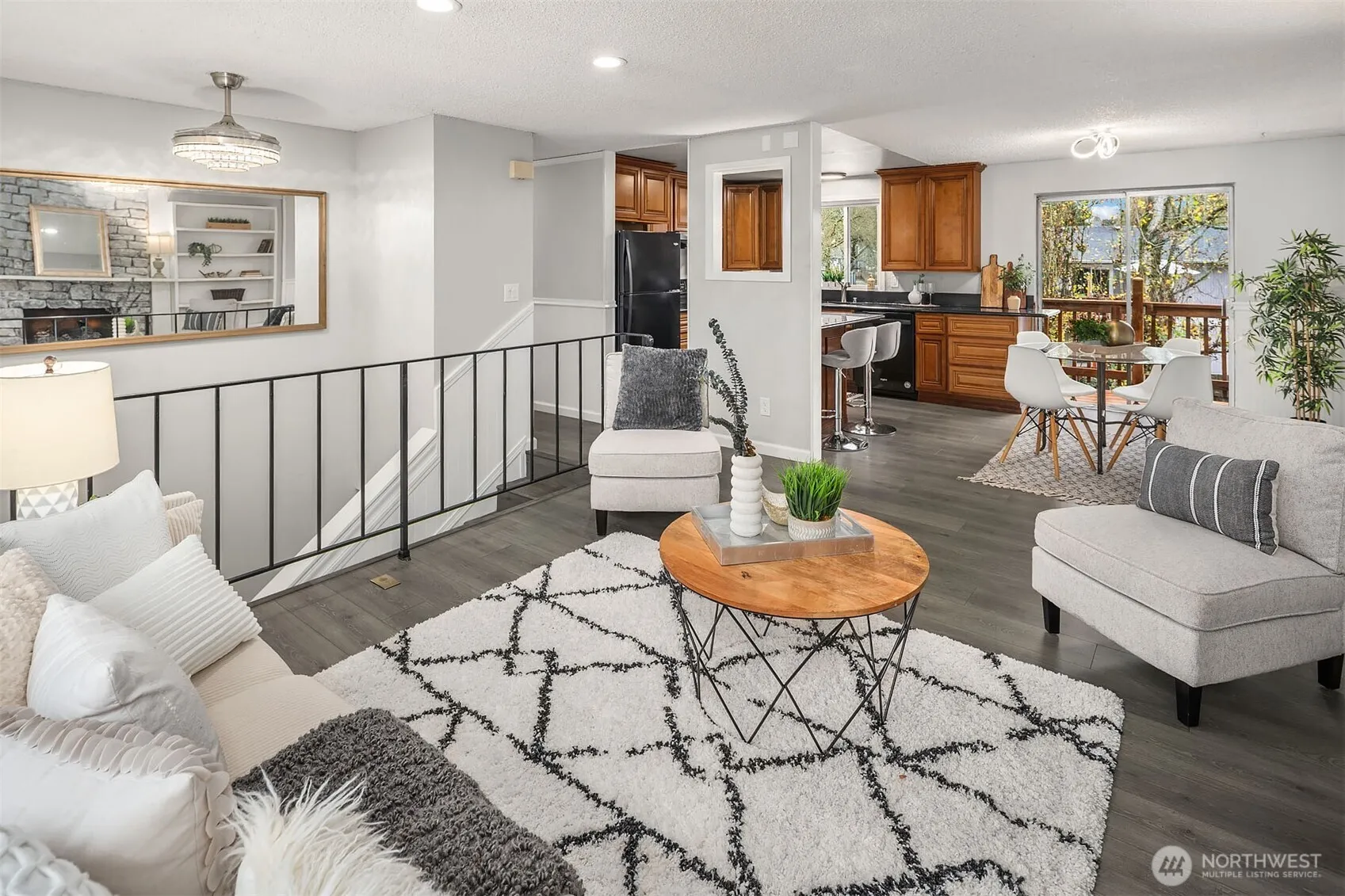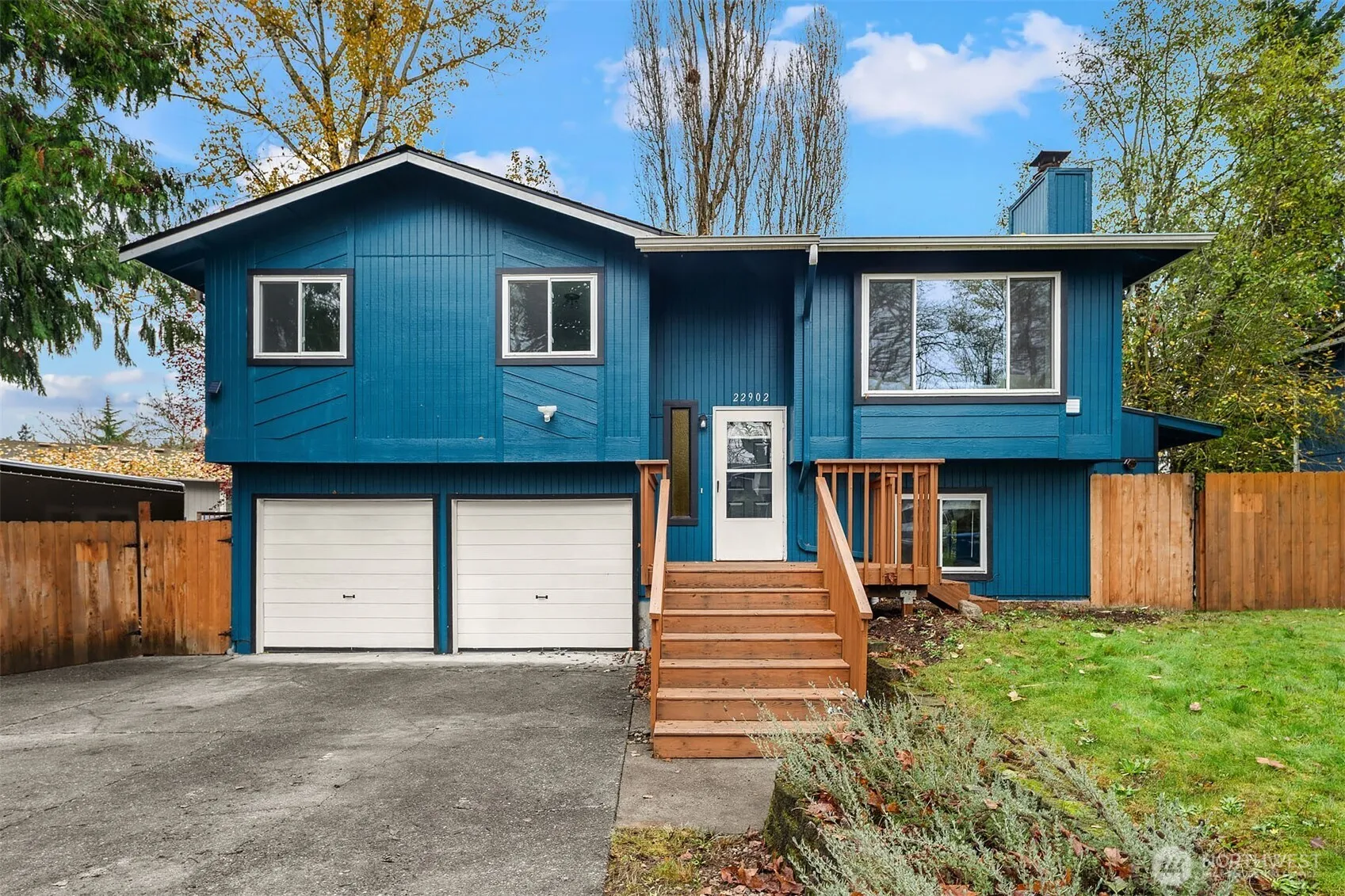 Discover this inviting 4-bedroom home within a peaceful cul-de-sac! Full lower-level suite with its own entrance, kitchen, bedroom, and laundry offers the perfect setup for guests, multi-generational living, or rental potential. The main level features a light filled kitchen with granite countertops, an open living room with a cozy wood burning fireplace, and dining area leading to a deck overlooking the private backyard. Relax in the fully fenced outdoor space with a hot tub, fire pit, and garden beds all in a convenient Kent location close to schools, parks, and everyday amenities.
