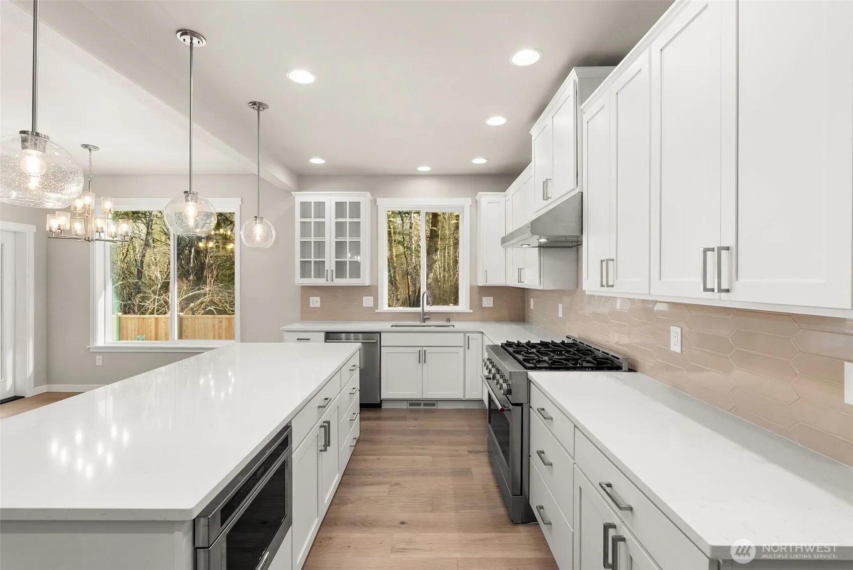 The Kingston at Trosper Woods offers over 3,200 sq. ft. of flexible space in a thoughtfully designed 2-story plan. A main-level den near a ¾ bath adds versatility for guests or work-from-home needs. The gourmet kitchen includes quartz counters, upgraded KitchenAid appliances, Maple cabinetry and both a butler’s w/beverage cooler & walk-in pantry. Upstairs you’ll find a luxurious primary suite w/vessel tub & full tile shower, 3 additional bedrooms, a spacious bonus room, and elegant finishes throughout. Enjoy hardwood flooring, Canyon Creek cabinetry & energy-efficient features like solar panels and a heat pump. Fully landscaped w/sprinklers, privacy fencing and covered patio. Convenient Tumwater location near I-5, Costco, schools & parks.