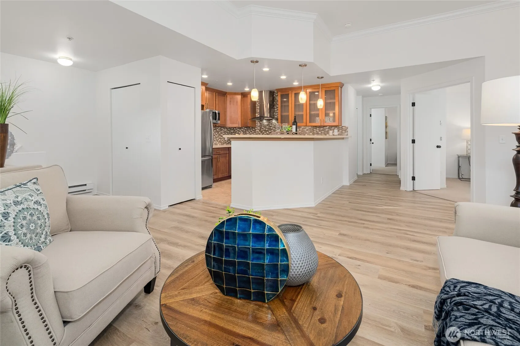 Welcome to this beautifully refreshed TOP FLOOR/END UNIT tucked in Terrace @ Riverview (a peaceful/lovely green community). This townhome shines w/brand-new flooring, fresh paint, updated kitchen/baths – blending modern style w/everyday function. Spacious/sunlit living area invites you to relax while the primary suite offers a private retreat w/a walk-in closet & attached bath. Enjoy a covered patio w/peaceful greenbelt views—ideal for coffee, friends, or a moment of calm. Oversized 1-car garage w/storage. Easy access to freeways, shopping/trails/parks/SeaTac airport/dwntwn Seattle, this home offers a blend of comfort, style & accessibility. Move-in ready w/all appliances provided. Low HOA dues. 2 pets allowed. PREINSPECTED & NO RENTAL CAP!
