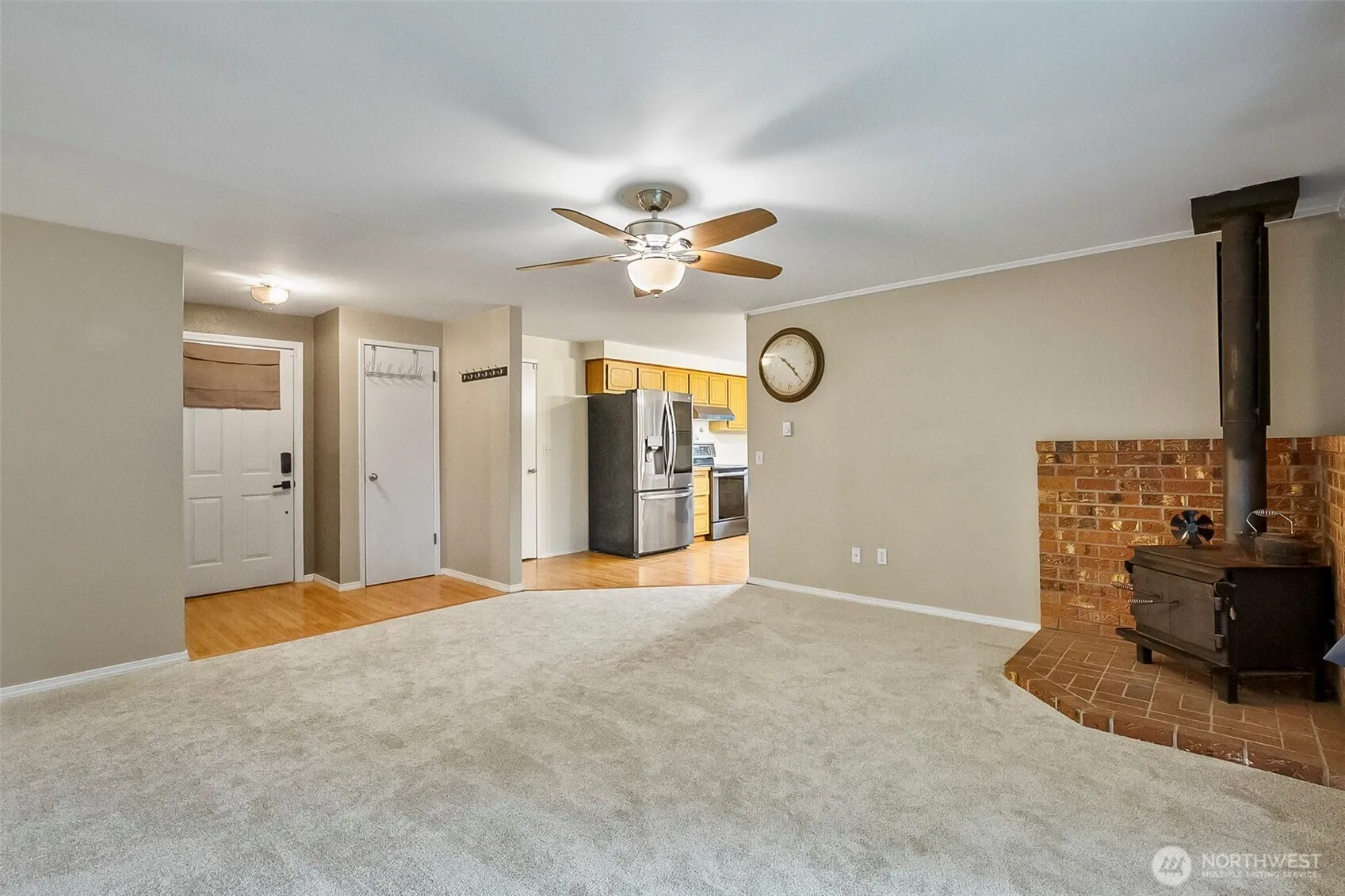 Absolutely spotless rambler is beatifully maintained, shows almost like new. Open floorplan that’s light & bright w/ lots of windows, brand new plush carpets, new upgraded vinyl plank floors in both baths, new exterior paint, gutter guards, tasteful decorator colors thru out, F/S woodstove in living room. Very large kitchen w/ newer upscale appliances (incl W/D), sliders to gorgeous private back yard that has 3 high quality shed/workshops. Large garage, huge gated RV parking, lovely landscaping & neighborhood, quiet residential street. Across from nice City park & playground. This home does not disappoint.