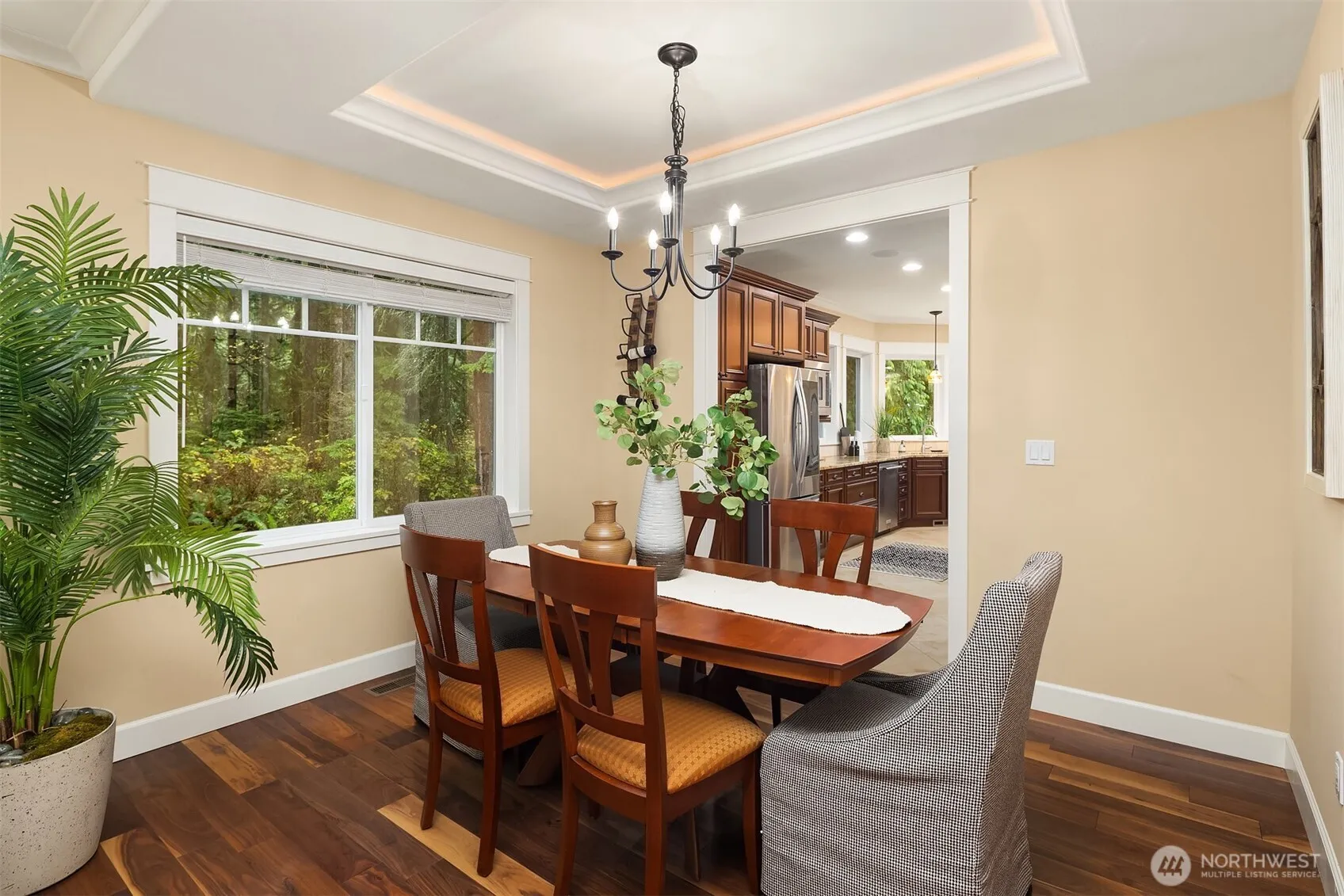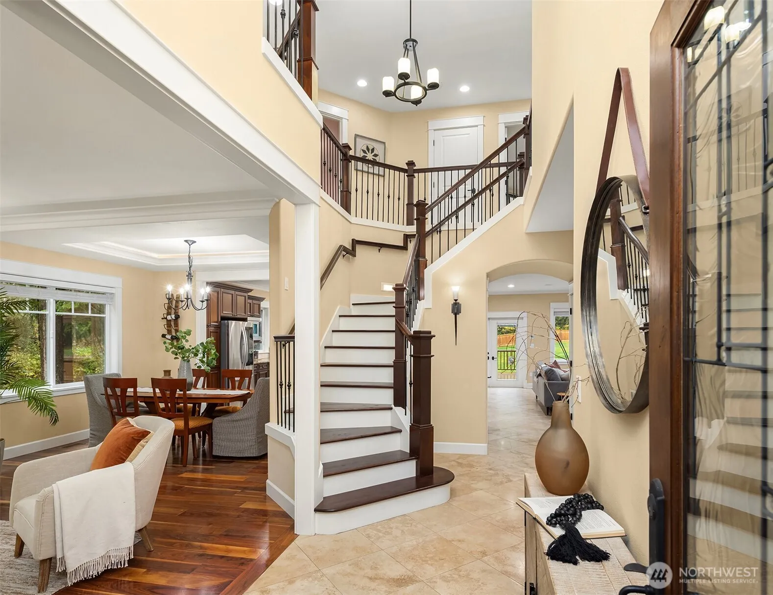 Timeless custom home on 5 pristine acres, offering elegance and privacy in a remarkable setting. A fully fenced level backyard flows into a forested area with walking trails and gardens, creating a serene retreat. Inside, pride of ownership is evident, with the residence feeling like new and showcasing hardwoods, formal living and dining rooms, a powder room, and a Great Room kitchen with breakfast nook, large island, and access to a rear deck with hot tub. Primary suite features a luxurious 5-piece spa bath, oversized bonus room, 4-car garage with RV door. Hobby/exercise room w/3/4 bath adds versatility. Inviting covered front porch welcomes you with landscaped grounds and the uncompromised privacy that defines this exceptional property.