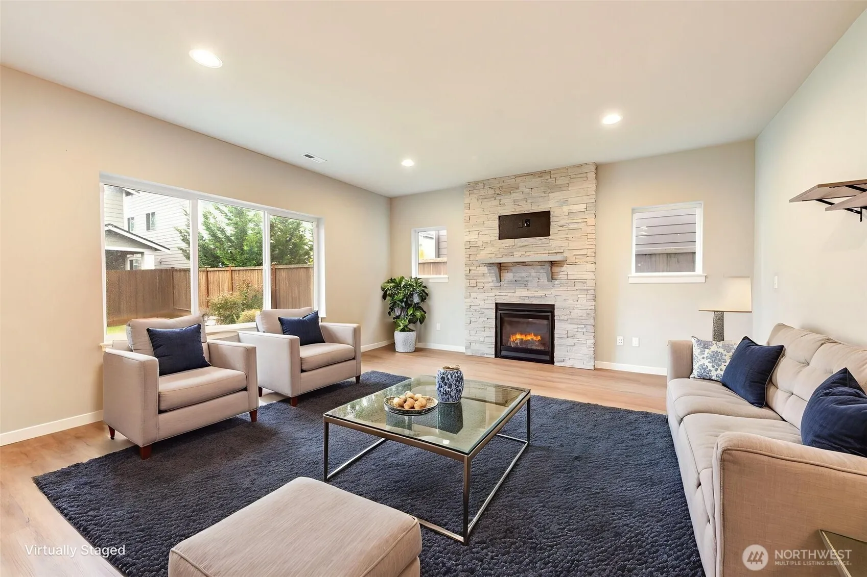 Welcome Home! The extra wide entryway is so inviting! This Home feels like it is Brand NEW! New Carpet and LVP Flooring! Light, Bright, Open, Clean, and Beautiful! The kitchen boasts beautiful Sparkling Quartz Countertops, Oversized Island to enjoy breakfast or visit while entertaining, and a TON of Natural Light! Curl up by the Romantic gas fireplace just in time for the Holidays! The Primary suite has statement making double doors, an ensuite bathroom and a Giant Soaking tub to relax in after a long day at work. Lake Stevens School District, Close to shopping, Minutes to I-5 and Hwy 9. Step out back into your low maintenance back yard, extended patio, and focus your time on what is really important! Enjoy your new memories!