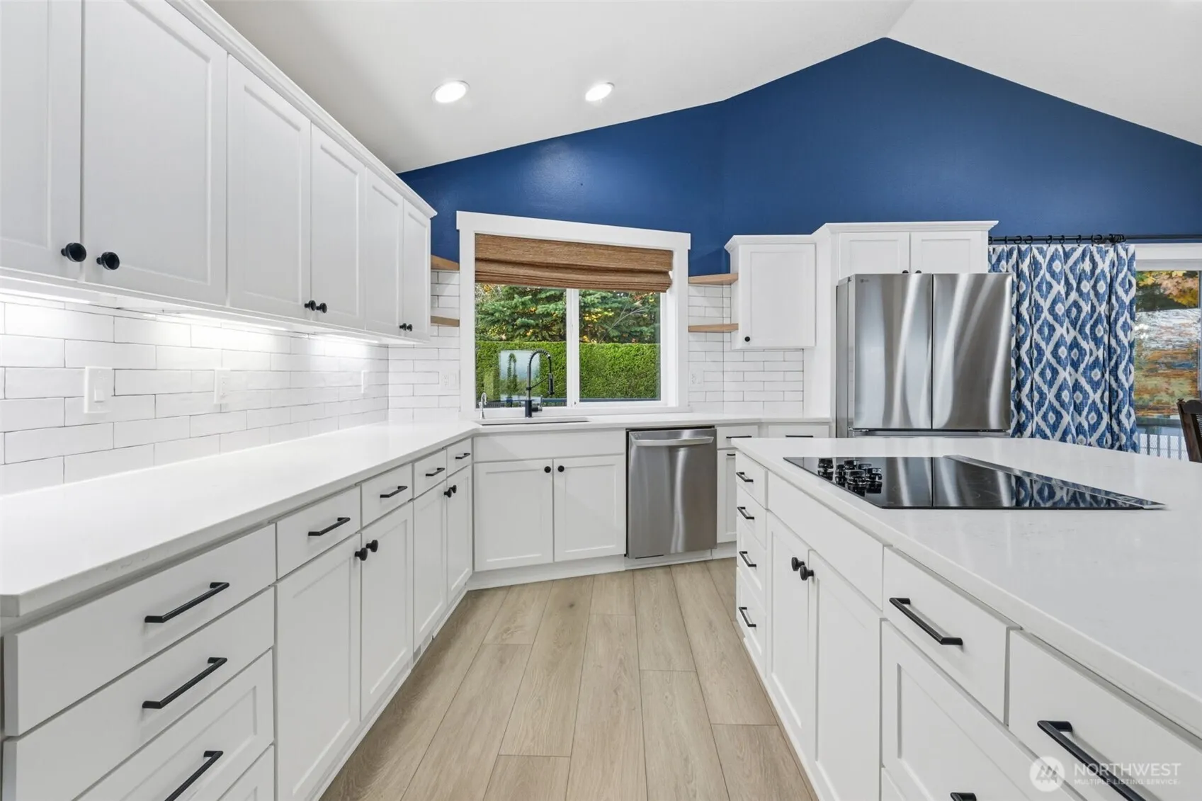 Welcome home to this beautifully updated one-level retreat on a quiet Camas cul-de-sac! Bright and airy with vaulted ceilings, skylights, and open-concept living. The remodeled kitchen features white shaker cabinets, subway tile, a large island with cooktop, and stainless appliances. The spacious primary suite includes a spa-like bath with double vanity, walk-in shower, and custom closet. Two additional bedrooms, modern bath, luxury vinyl floors, and large laundry room add comfort. Enjoy a newer 50-year roof, deep garage with 220V power, and private ¼-acre lot with deck and toolshed. Just minutes from Downtown Camas, Columbia Palisades, shops, restaurants and more!