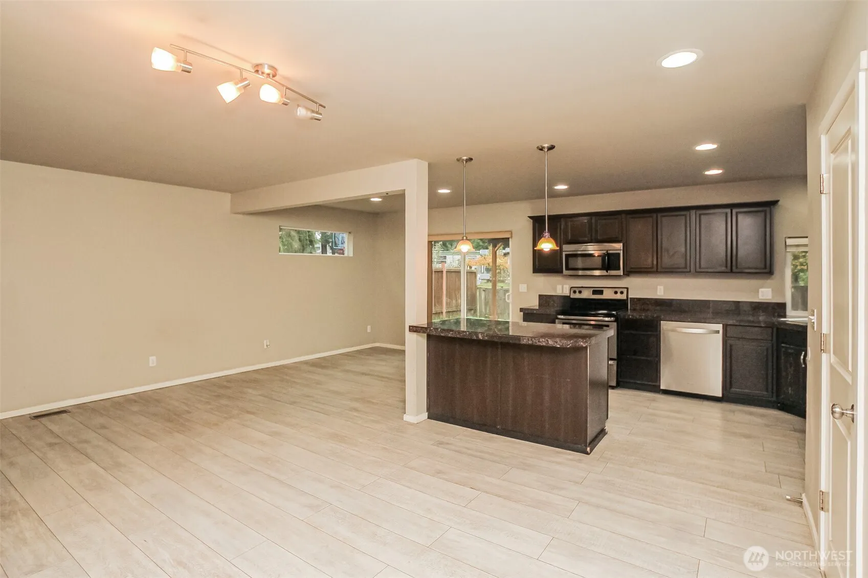 Welcome to this inviting Graham home featuring stylish laminate flooring and an open-concept kitchen complete with granite countertops and stainless steel appliances. The spacious dining area flows easily into a generously sized living room, perfect for everyday living or entertaining. Upstairs, the primary suite offers a private bathroom with dual sinks, along with two additional well-sized bedrooms. Enjoy a large, fully fenced backyard—ideal for outdoor activities, pets, or relaxing evenings. Conveniently situated near shopping, parks, trails, restaurants, schools, and with good proximity to JBLM.