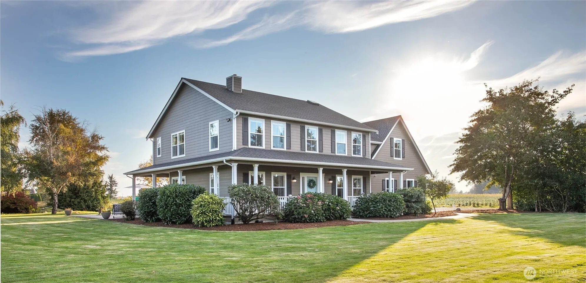 Incredible opportunity to own an upgraded, mid-county mountain-view farm home on 1.4 park-like acres! Tucked away down a private drive and bordered by farm and nursery lands, this home has it all. 5 bedrooms, an office/den, a massive bonus room with a home theater above the garage, and 2.5 bathrooms. Enough space to spread out, but cozy enough to call home. Double-sided gas fireplace, country kitchen with exposed brick and wooden beams, plus a large outdoor patio for entertaining. Take in breathtaking views of Mt. Baker as you sit by the pond, work in the detached 700 sq foot shop, or play frisbee in the yard. RV and boat parking, too. A rare and special property with simply too many improvements to list. Don’t let this one slip away!