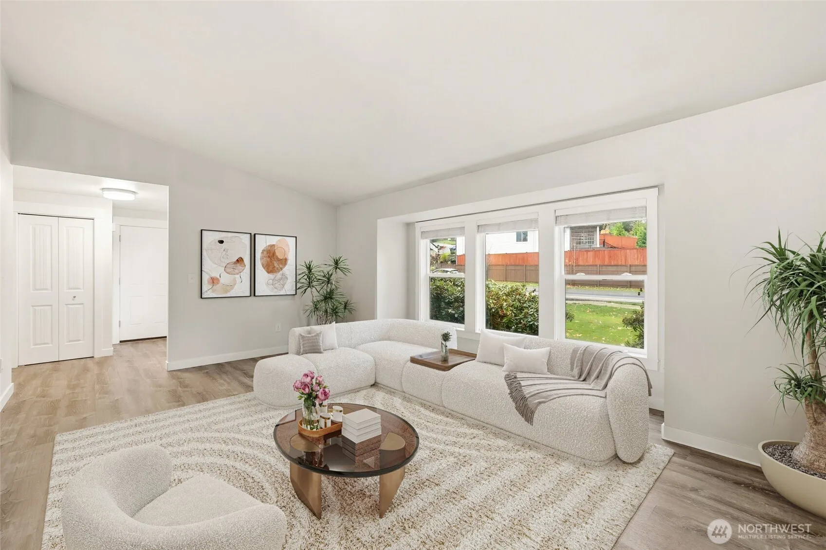 Beautifully remodeled 2-bedroom, 2-bath home in the heart of Steilacoom! The bright living room features vaulted ceilings and a cozy gas fireplace, opening to a welcoming dining area and a stylishly updated kitchen with stainless steel appliances. The spacious primary suite includes two closets and a private bath. Step outside to enjoy a large, partially fenced yard—perfect for relaxing or entertaining—and an attached 2-car garage. Ideally located near Sunnyside Beach Park, Fort Steilacoom Park, JBLM, shopping, and dining. This move-in-ready home blends comfort, convenience, and charm!