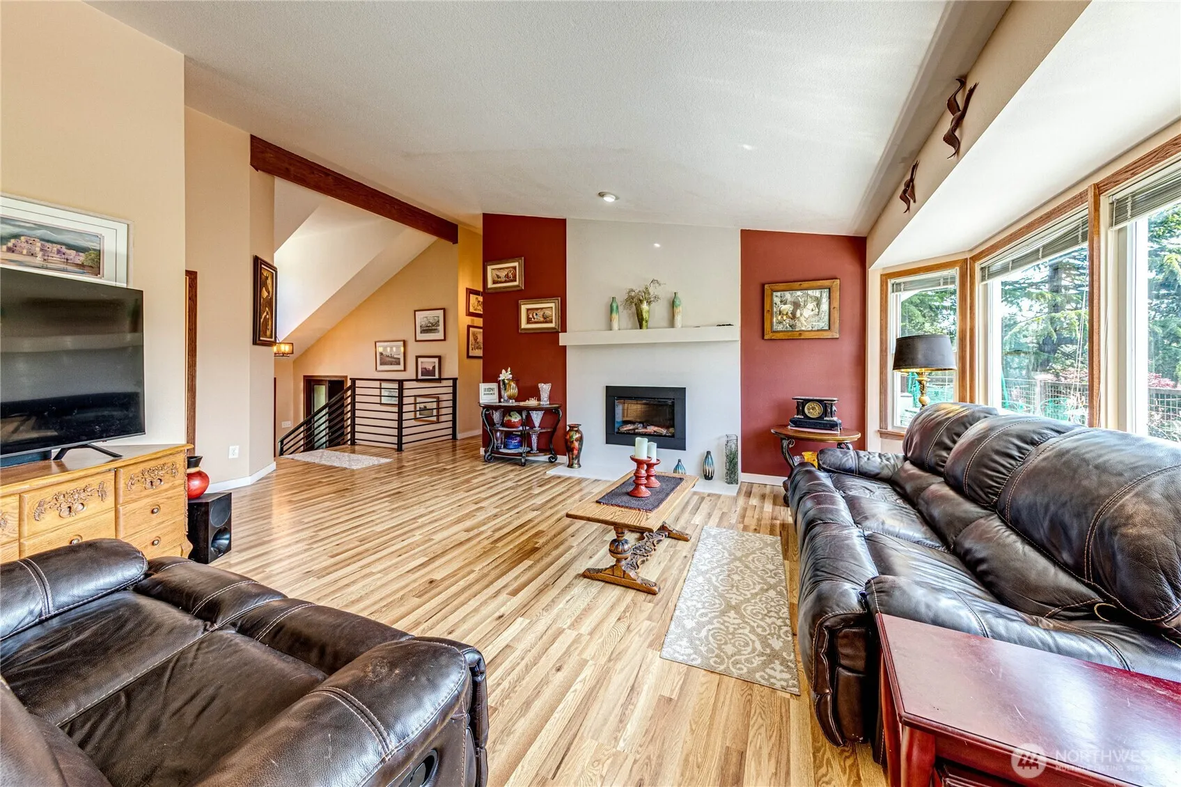 Back on Market at Reduced Price! Beautifully maintained home with unobstructed mountain views. Kitchen is equipped with granite countertops, soft close cabinets and high-end stainless-steel appliances. Hard surface floors run throughout the home. Vaulted ceilings. Primary bedroom offers a luxury ensuite w/large soaking tub and custom tile shower. Deck spans the entire back of home. Lower level has family room, 2nd kitchen with custom wet bar, large bedroom, 2 bathrooms and an office—perfect for a guest suite or potential in-law setup. Covered deck off family room leads into beautifully landscaped and fenced backyard featuring a large patio, outdoor kitchen area, gazebo. Private trail leading to river with access only for this neighborhood.