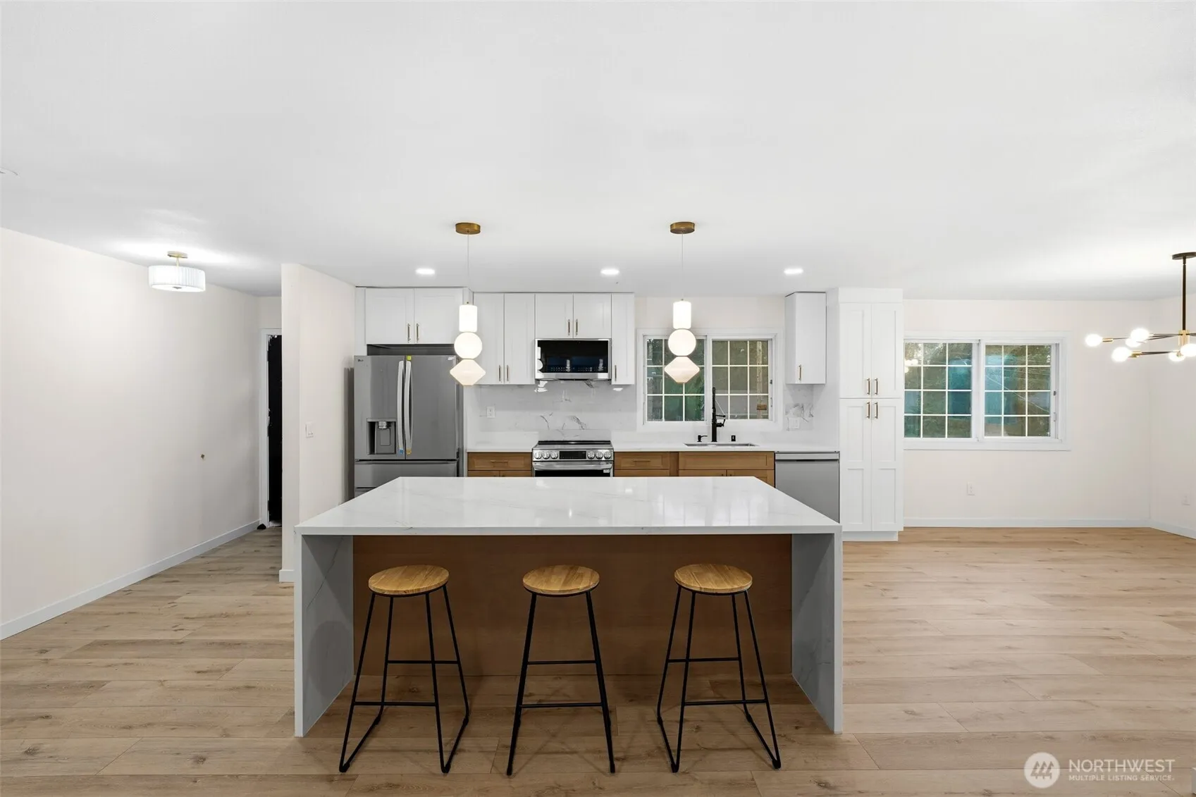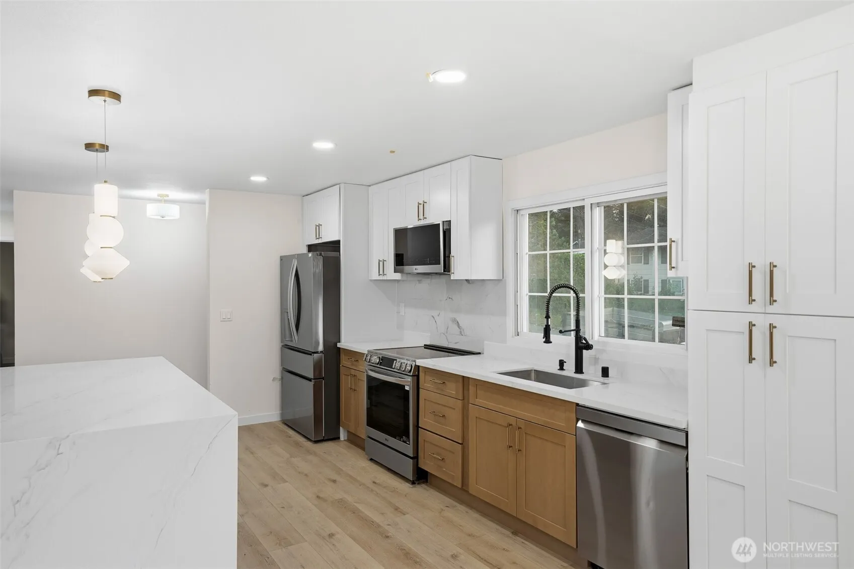 Fully-renovated & ready to enjoy, this treasure blends comfort, flexibility, & income or multi-generational living opportunities! Step inside to sunlit spacious living spaces with new engineer hardwoods in the whole house Enjoy a beautifully open concept floorplan. Spacious with island kitchen and brand new stainless steel appliances. The lower is private & offers 2 bed rooms, 1 full bath and mini kitchen perfect for extended living, guests, or rental income! Fresh interior/exterior paint. Huge back yard with spacious deck