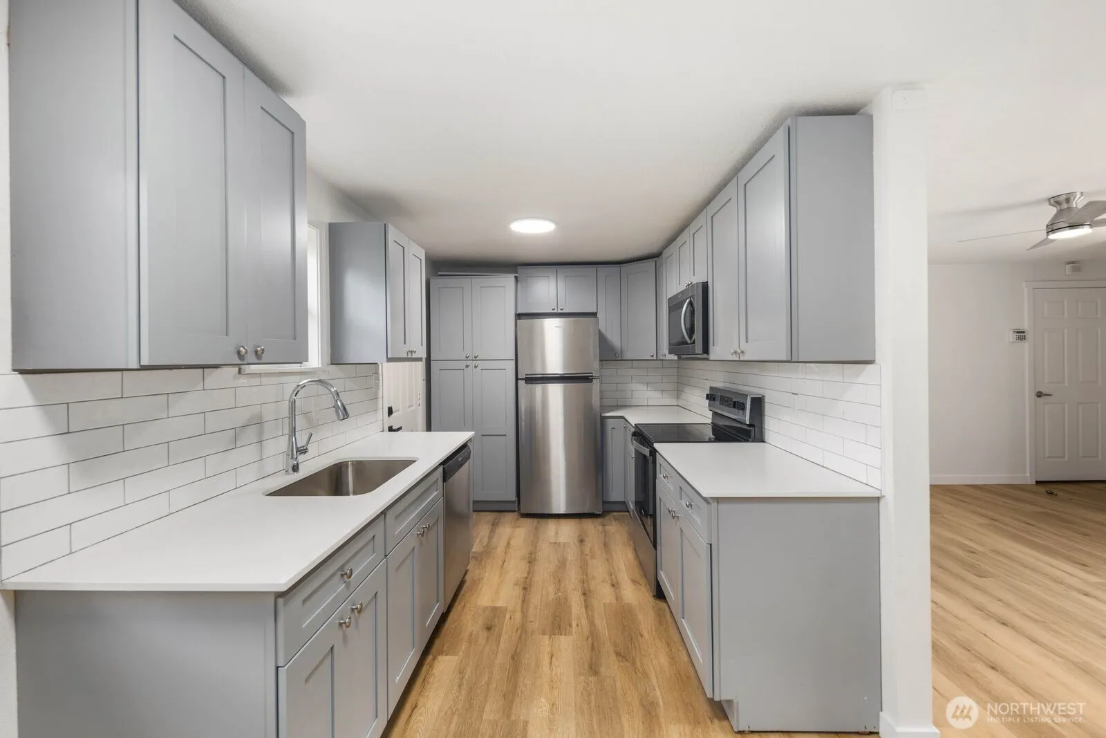 Welcome to this exceptional Federal Way home in the charming Mirror Lake neighborhood! Set on a spacious corner lot, this property features a detached garage and the downstairs ADU-ideal for extended living, rental income, or multigenerational needs. Enjoy the benefits of being just moments from the local elementary school, making daily commutes a breeze. The expansive lot provides plenty of outdoor space for gatherings, gardening, or future enhancements. Detached garage offers an incredible opportunity for small business owners; comes with plumbing, heating and electrical. Inside, this residence combines comfortable living with income potential and flexibility, in a location known for its convenience and community atmosphere.