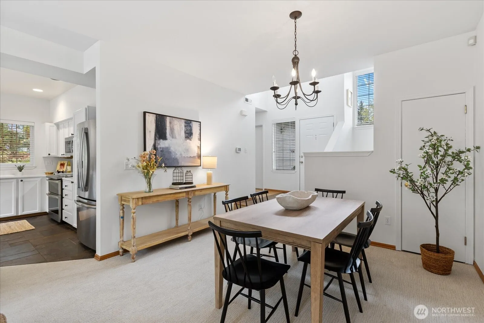 Beautiful, spacious 3-bedroom townhome in convenient North Edmonds location! This private end unit lives like a single-family home and features a main floor bedroom/full bath. Bright 2 story entry with lots of windows. Living room and formal dining with cozy gas fireplace is the perfect space to relax or entertain. Refreshed kitchen with updated appliance and eating nook w/ slider, looks out to the tranquil duck pond. Laundry and garage access complete the main. Upper level with 2 bedrooms BOTH with en-suite bathrooms. Attached oversized 1 car garage, driveway space and a reserved parking space. Mukilteo schools. All new paint and carpet. Easy access to Paine Field, Alderwood, freeways and shopping!