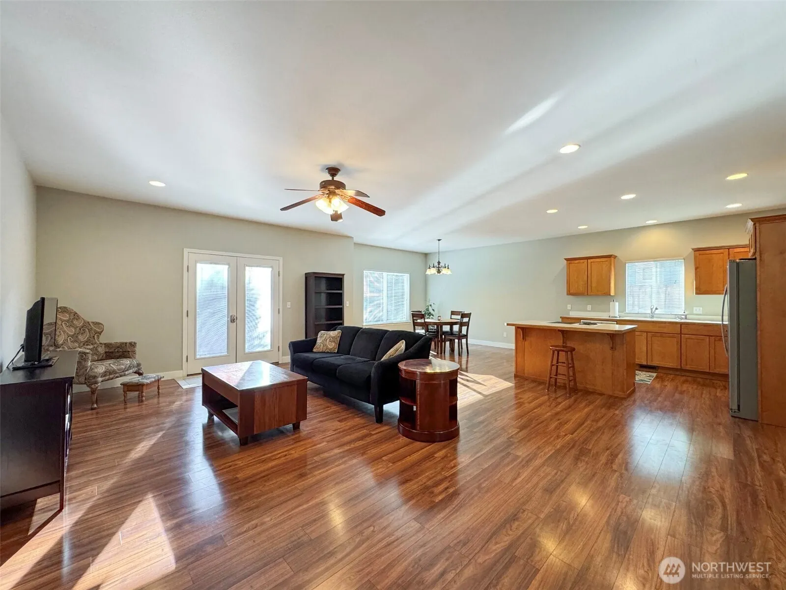 Welcome home to Sun Meadows. This 2 bedroom, 2 bath home is move in ready & has been very well maintained. Enter through the covered front porch, which overlooks the green space, and you are welcomed with an expansive great room featuring high ceilings, an open kitchen/dining area w/ center island, & a large living room. The French doors open to a private, exterior patio & terraced garden w/ two abundant fruit producing trees, an Asian Pear & a Spartan Apple. This low maintenance yard is perfect for just enjoying Sequim, instead of yard work, & the homes location directly across form the green space is ideal. Sun Meadows is perfectly located to all that Sequim has to offer, the Olympic Discovery Trail, Carrie Blake Park & all the shopping.