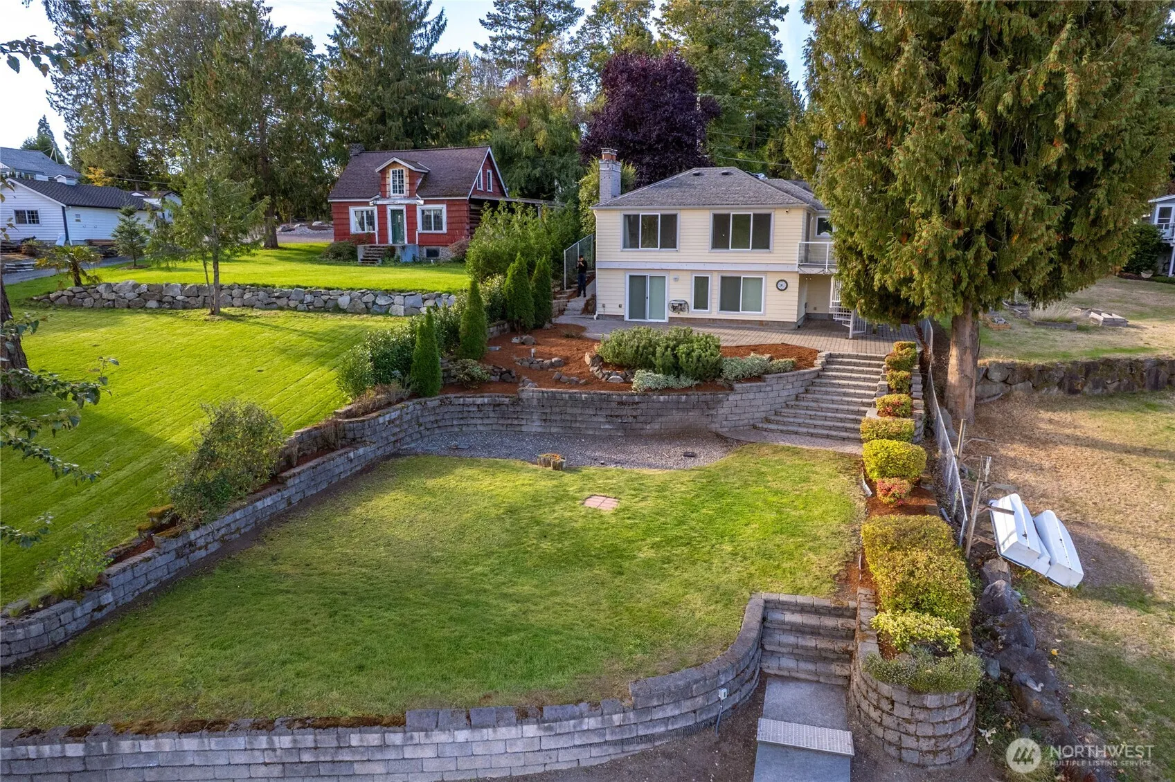 Escape to the lake without leaving the city! Renovated down to the studs in 2008 w/all new plumbing, electrical, insulation, drywall, siding, roof, windows & doors, this Angle Lake gem offers 55 feet of no-bank waterfront & private dock w/boat slip & dog ramp. The main level features open liv/dining areas w/sweeping lake views while the lower level functions as a fully separate liv space w/its own entry, fam rm, kitchenette, bth, BR & two flex rms—ideal for guests. A detached retro-chic DADU adds even more versatility—perfect for extended stays, a home office, or rental income. Terraced landscaping, an expansive paver patio & tranquil lake views create the feel of a year-round getaway, all just min from airport, light rail & major freeways.