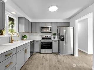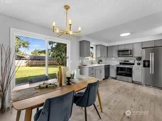 Enjoy comfort and convenience in this beautifully updated, single-level 3-bedroom home featuring ALL NEW carpet, luxury vinyl plank flooring, fresh interior paint, modern fixtures, windows, cabinets & appliances. The bright, open layout includes a welcoming living room with a cozy wood-burning fireplace and a dining area that opens to an expansive, fully fenced backyard—ideal for relaxing, gardening, or entertaining under the shade trees. Perfectly situated on an oversized lot just 15 minutes from PDX, this home offers the best of close-in living with quick access to shopping, dining, parks & schools. Move-in ready with every detail refreshed, this thoughtfully remodeled home blends modern style, comfort, and functionality inside and out.