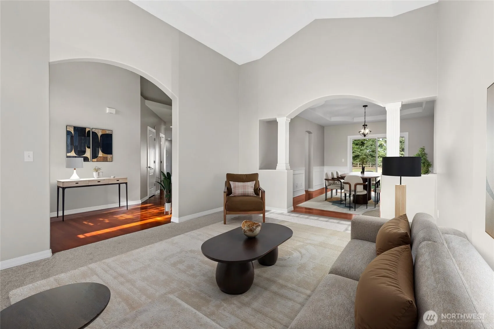 No HOA! Beautifully maintained home on a full, level acre. Fresh updates: new countertops, interior paint, new carpet, fixtures/lighting, & new stove! Spacious 4 bed+den+bonus rm w/ formal living/dining & open gourmet kitchen. Feat. hardwoods, 2 FPs & A/C. Deluxe primary suite has a see-through gas FP to the 5-pc bath w/ large walk-in tile shower. Fenced acre w/ stunning Mt. Rainier view. Massive 40×56 (2,240sf) clear-span steel shop—ideal for hobbies, storage, or business possibilities. Feat: concrete floor, 220 pwr, 3 large doors (14′, 12’6″, 10’H). Also: 3-car garage, RV parking, RV pwr & dump. End of private paved st, near Hwy 410.