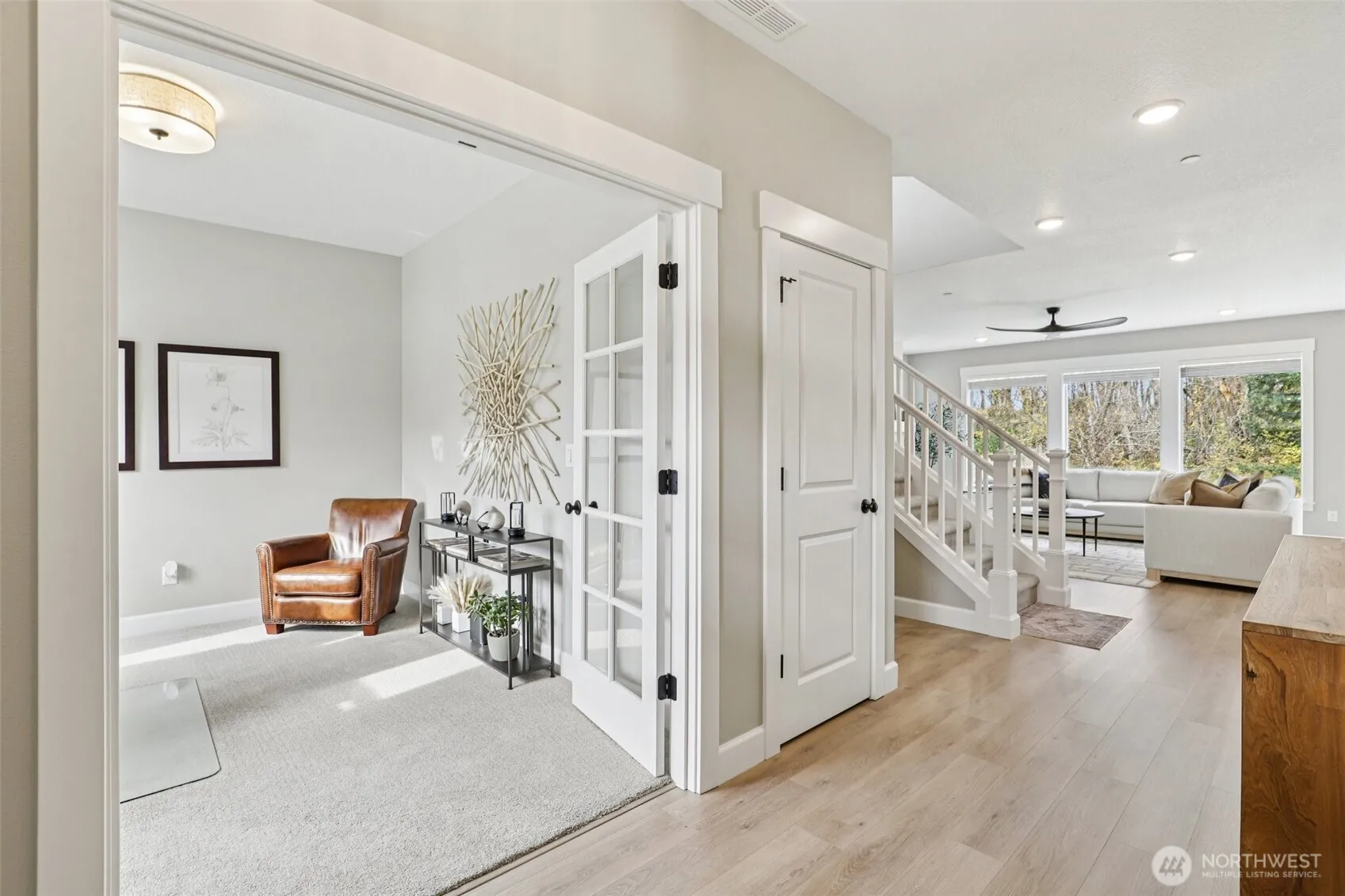 Immaculate Camas home backing to greenspace – beautiful sight lines, exceptional privacy, & a peaceful presence.Freshly painted interior, upgraded lighting, & EV charger reflect thoughtful care.Open-concept main floor w/dining area, lovely kitchen, living room & a private office. Oversized windows throughout the home invite abundant natural light, enhancing the home’s airy ambiance.Upstairs, a stylish loft w/custom feature wall serves beautifully as a second living area. The primary suite w/expansive windows, ensuite, & a meticulously organized walk-in closet.Two additional bedrooms & laundry room. Outside, the extended patio & turf yard create an inviting setting for outdoor relaxation.Don’t miss the side yard-perfect for play! A must-see.
