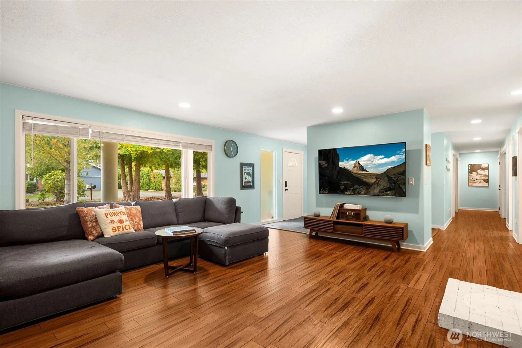 Welcome home to Si View! Situated on a large corner lot this 3 bedroom home features newer flooring, quartz countertops, an updated kitchen and bathrooms. The cozy den off of the kitchen has a gas fireplace to keep you cozy. The highly sought after location is close to the Si View community park, trails, restaurants and shops. The 2 car garage has a large driveway great for your RV and NO HOAs. The covered back deck is perfect for entertaining or relaxing and taking in views of Mt. Si. Enjoy all that North Bend has to offer!