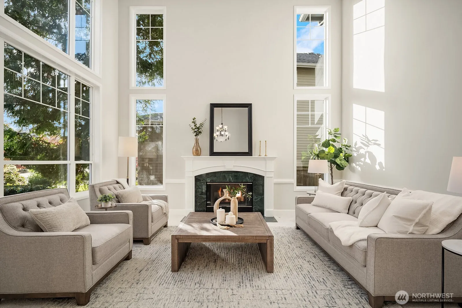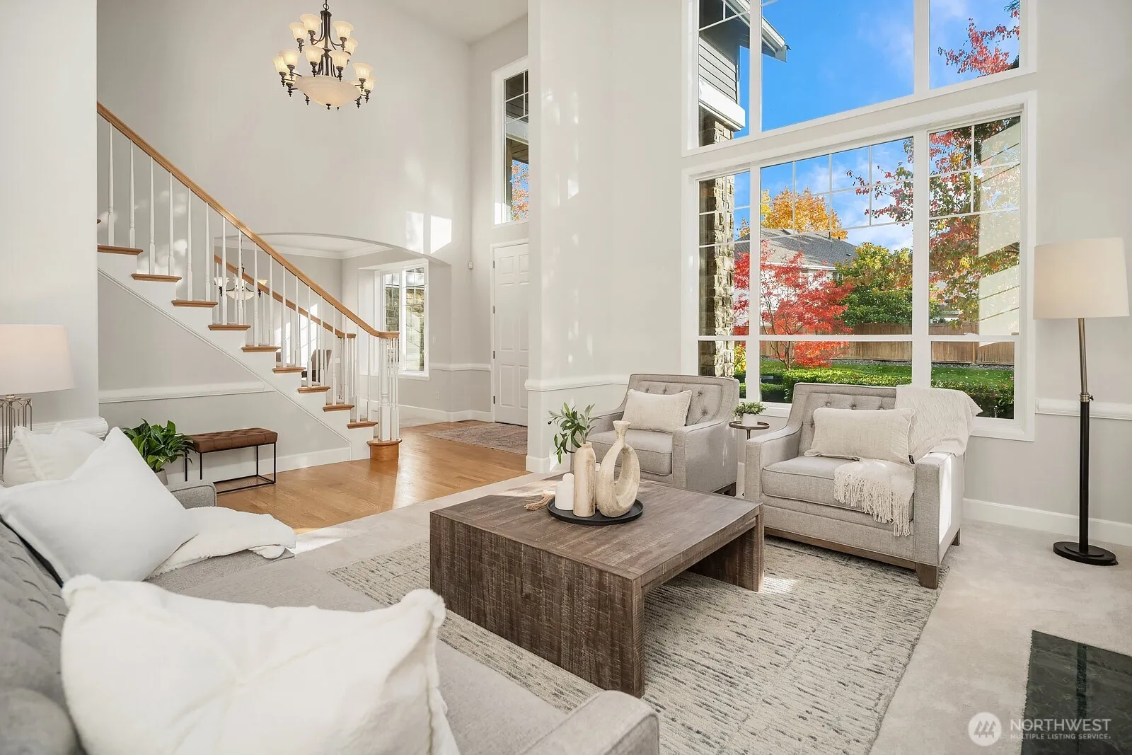 Stunning 4 bedroom retreat set in one of Sammamish’s most desirable neighborhoods. Gorgeous living room with soaring vaulted ceilings. spacious great room flows into the chef’s kitchen, floorplan perfect for entertaining or quiet nights at home. Main-level bonus & full bath offer ideal flexibility. Luxurious primary suite with ensuite bath & walk-in closet. One of the secondary bedrooms also features an ensuite bath. Second upstairs bonus room provides the perfect space for play, media, or study. Freshly painted & brand new carpet. Set on a greenbelt & next to a neighborhood park, this home offers exceptional privacy and a sense of nature at your door. Enjoy the quiet, tree-lined streets, community parks & trails, and top-rated schools.