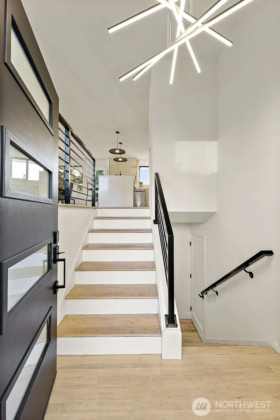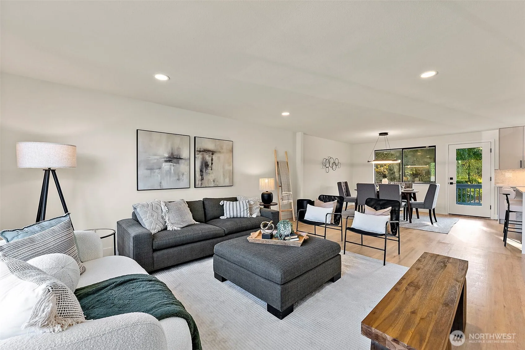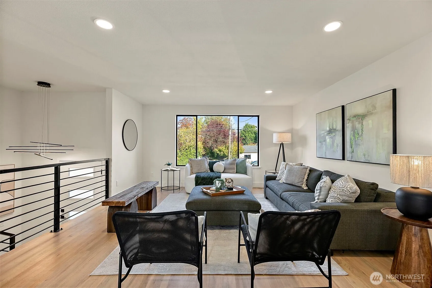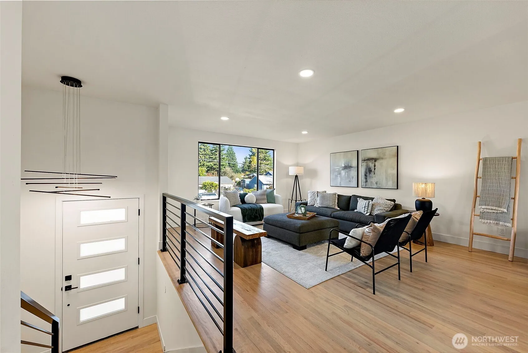 This ultra-modern 4-bedroom, 2.5-bath home has been fully remodeled with chic design elements and clean, sophisticated finishes throughout. The gorgeous kitchen features sleek cabinetry, quartz countertops, and stainless steel appliances, complemented by stunning updated bathrooms and rich hardwood floors. The generous bonus room downstairs provides flexible space for media, work, or play. Enjoy the spacious lot with a deck overlooking the yard below with brand new fence—ideal for entertaining or relaxing outdoors. Ample parking with a long driveway for up to four cars plus street parking. Located near Burien’s boutique shopping, wonderful restaurants, and quick freeway access, this home blends modern luxury with everyday ease.