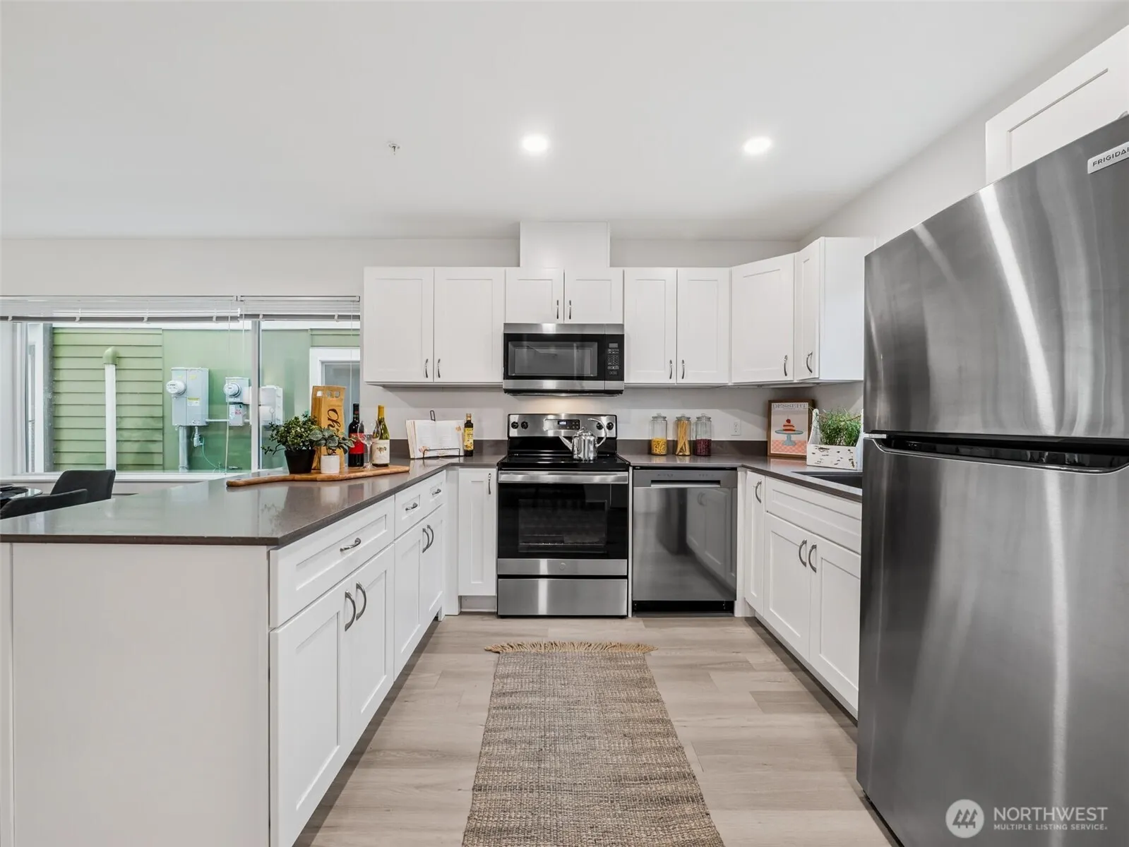 Discover modern comfort and eco-conscious living in this 4-bedroom, 2.75-bath new construction home. The open-concept main floor features a bright living area, cozy dining area, chef-inspired kitchen with quartz countertops and SS appliances—ideal for everyday living and entertaining. Main-level bedroom with ¾ bath provide flexible space for guests or multi-generational living. Upstairs offers a serene primary suite w/full bath, plus two bedrooms that share a full bath. Built with sustainability in mind, this home includes solar panels, ILFI Net Zero Energy and Salmon Safe ESDS certifications. Two parking spaces included. Located near light rail, SeaTac Airport, and DT Seattle.