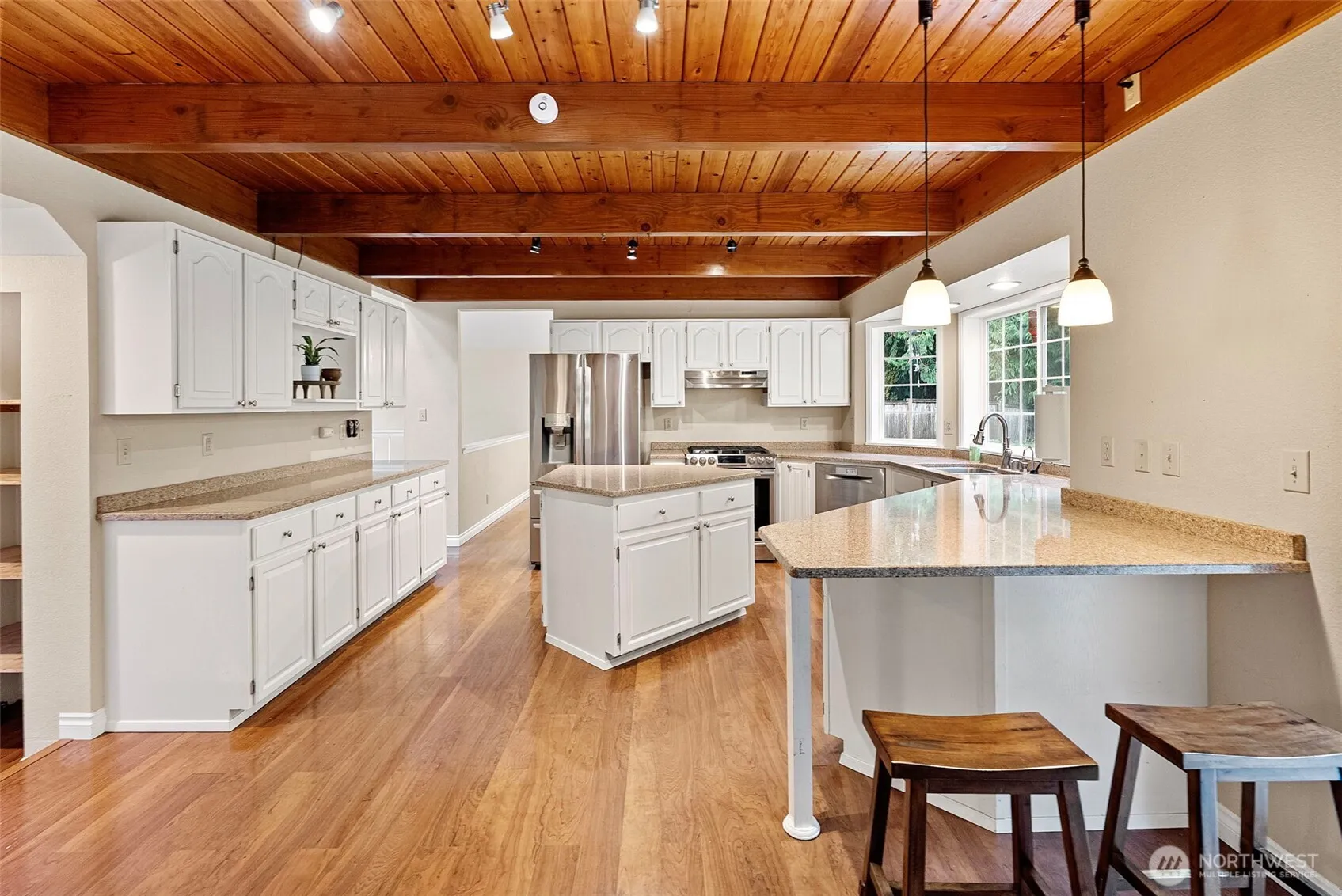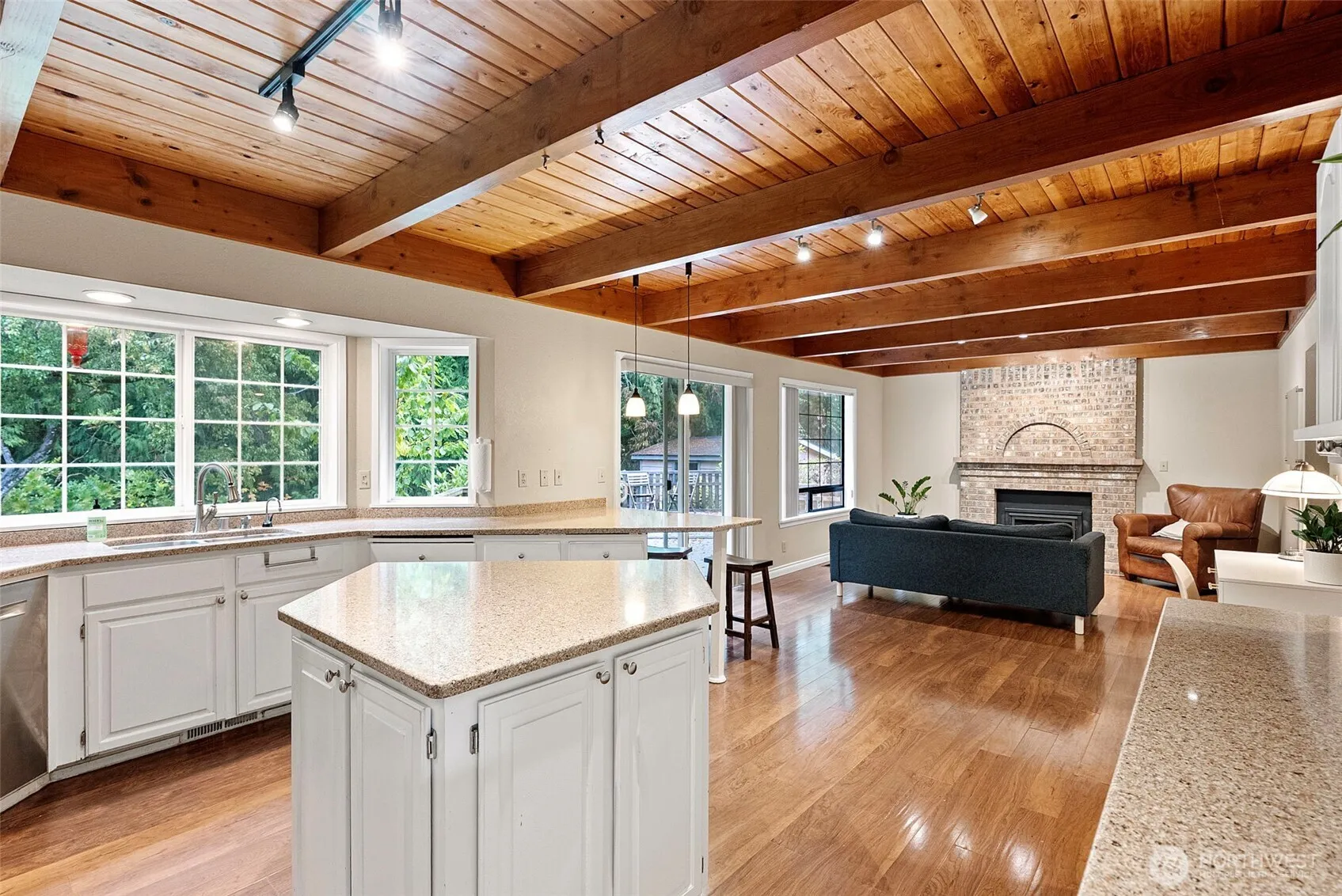 Stylish 3-bed, 2.5-bath stunner on nearly half an acre in Central Kitsap! Vaulted ceilings, skylights, and durable floors light up the open layout. The kitchen brings the wow with granite counters, island, breakfast bar, and exposed beam ceilings. Cozy up by the gas fireplace or entertain in the formal living and dining rooms. Upstairs: a spacious primary suite with 5-piece bath and walk-in, plus two more beds and full bath. Outside: massive yard with deck, fire pit, fruit trees, garden beds, and lush landscaping. RV parking, 2-car garage, central A/C, quiet cul-de-sac, and top schools. Completed geotech report clears the way for potential ADU—just bring your vision!