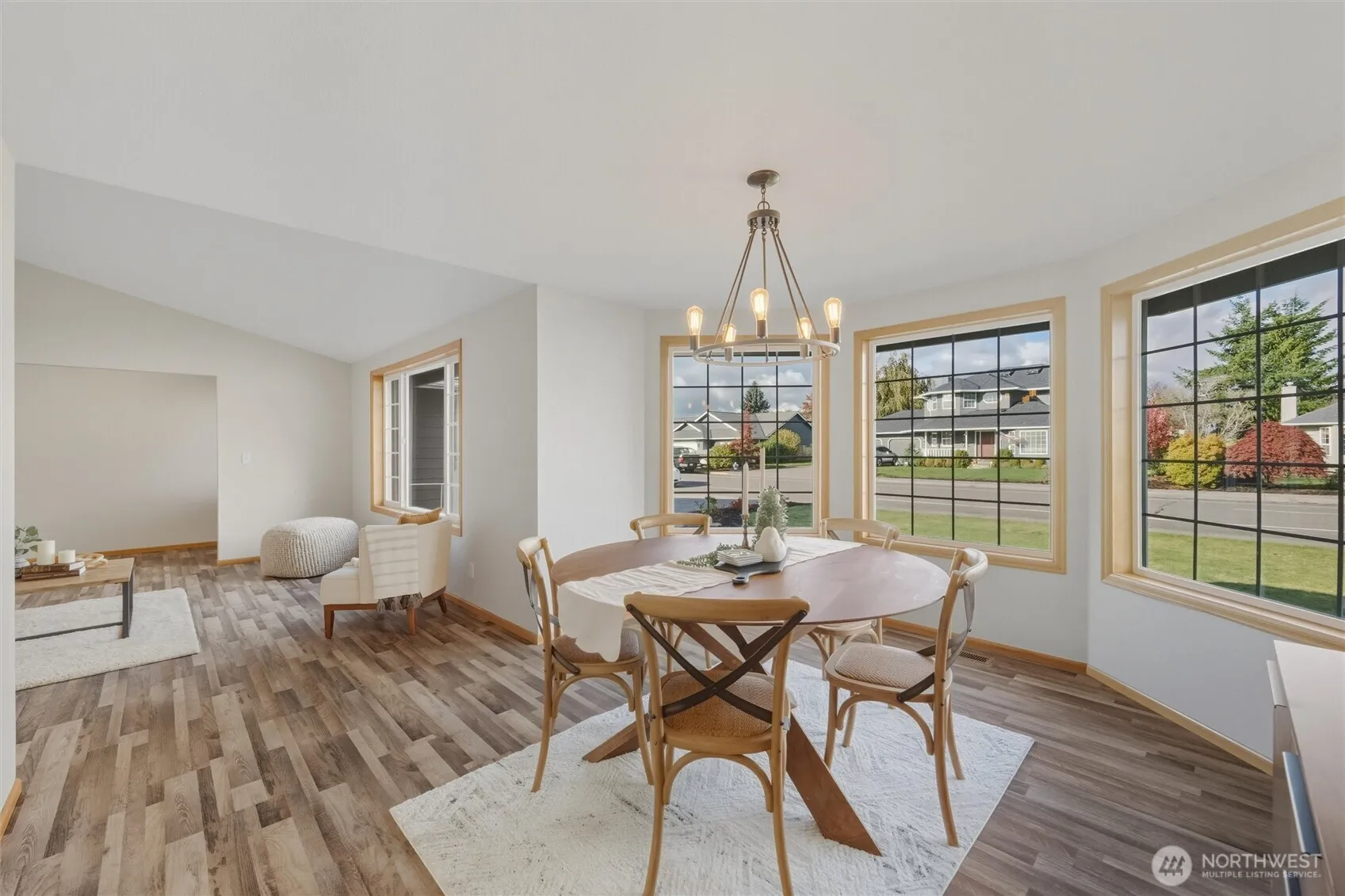 Spacious, light-filled, and updated, this 2,300+ sq ft single-level home in Lynden checks all the boxes. Set on a 10,000+ sq ft lot, it offers vaulted ceilings, A/C, LVP flooring throughout, and a bright open layout perfect for modern living. The large kitchen flows easily into dining and living spaces, ideal for entertaining. The expansive primary suite is a true retreat with two walk-in closets. Enjoy great natural light throughout and a fully fenced backyard that backs to serene territorial views—plenty of room for play, gardening, or relaxing evenings. Located on a quiet, sidewalk-lined street close to parks, schools, and town. This is Northwest living at its best, and a home you can really spread out in.
