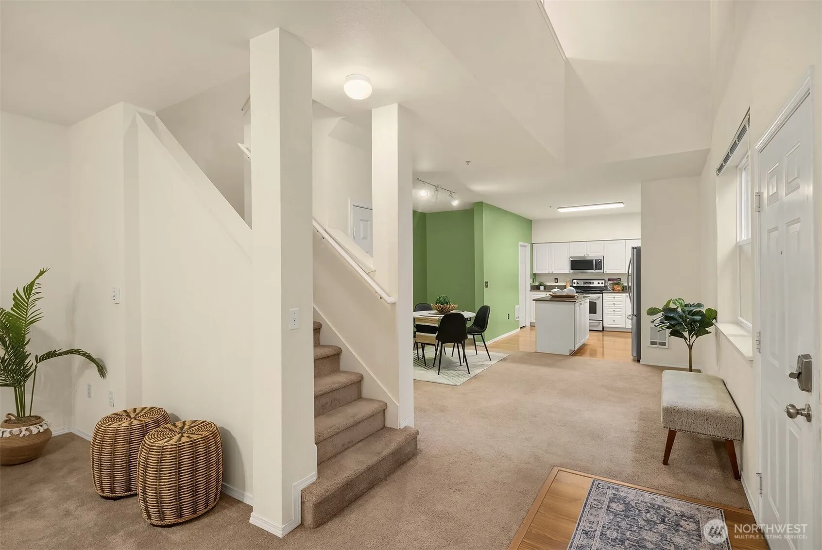 Welcome to your elegant and spacious townhouse in the desirable Wildwood condominium! This sunny, beautiful home offers an open-floor concept featuring a modern kitchen with granite counters, a large island, new appliances, and a spacious pantry. The kitchen opens to the dining & living rooms, providing direct access to a covered front patio overlooking a peaceful, lush ravine – a great place to relax & entertain. Wake up to panoramic views of this natural scenery just outside the windows of the two spacious bedrooms upstairs, including the primary suite with an en-suite bathroom. This lovely home includes two dedicated parking spaces and plenty of storage. Easy access to local transit, highways, parks & shopping. The good life starts here!