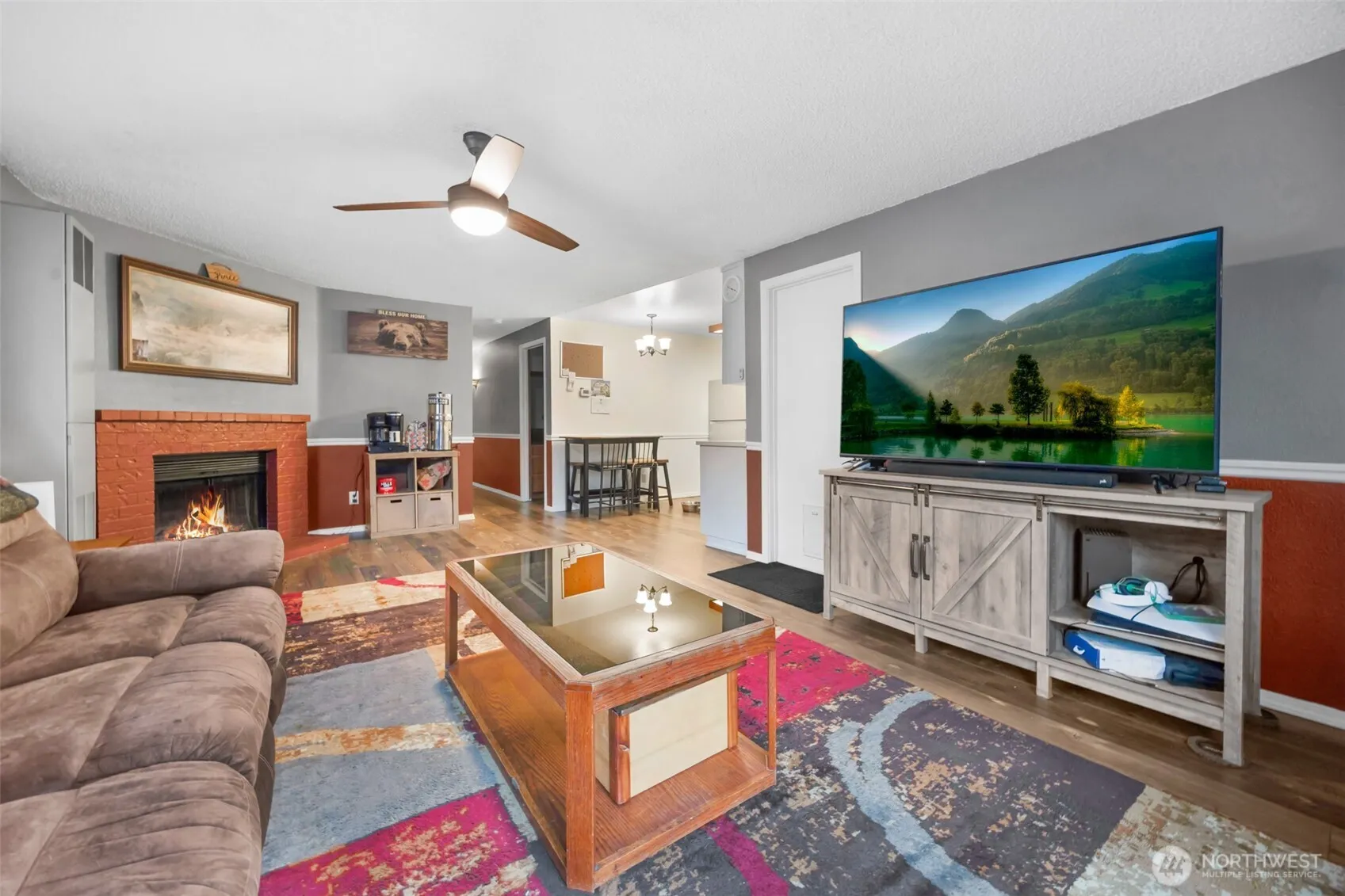 Marysville 3 bedroom, 1.5 bath, 1 car garage rambler with fenced front & back yards for your pets. Gas FA heat except bedrooms are electric wall heaters. SS finish 5 burner gas stove & microwave. Laminate floors in living room & kitchen. Wood burning fireplace in the living room. Primary bedroom has a 1/2 bath and slider to access the backyard, full bath in hallway. Main bath has tile surround. Vinyl windows, ceiling fans. Room to park 3 additional cars in the driveway. Walking distance to the elementary & High school…** agents** see remarks about showing times.