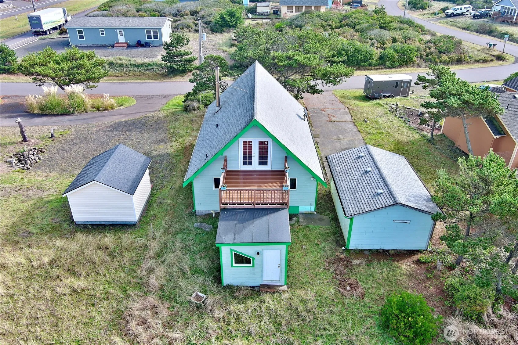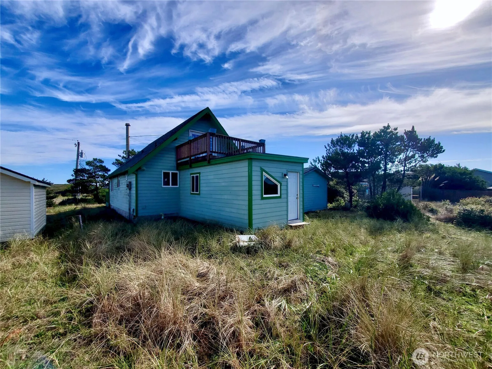 Cozy beach cabin with charm and character! This inviting getaway features vaulted ceilings that create an open, airy feel and fill the home with natural light. Upstairs, you’ll find a private room with its own deck offering peekaboo views of the ocean — the perfect spot to relax and enjoy the coastal breeze. With 2 comfortable bedrooms plus a versatile bonus room, there’s plenty of space for guests or a home office. Just a stone’s throw from the beach, this cabin is ideal as a vacation retreat or full-time coastal living. Property is in the community club.