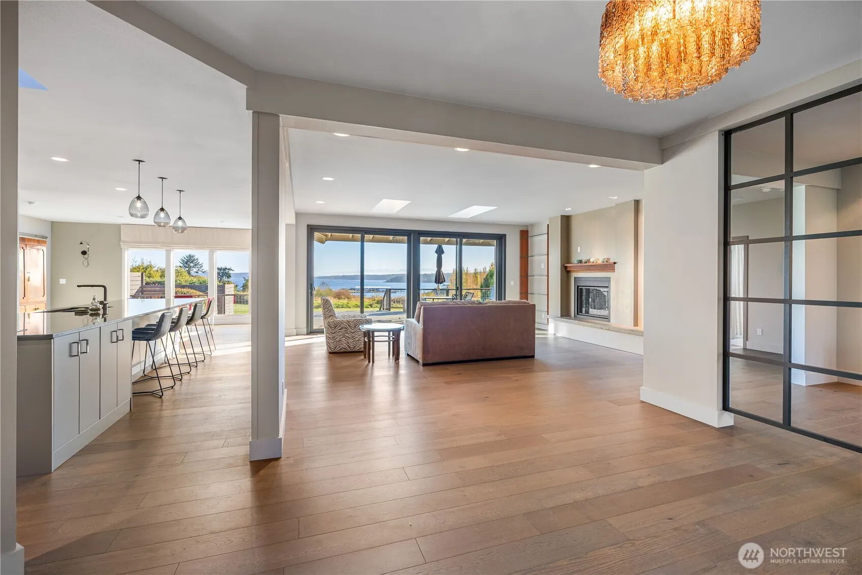 Expansive Griffin Bay and Cascade Mountain views abound from this immaculate one-story contemporary. Completely remodeled with the finest materials, this stunning home combines modern luxury with an ideal floor plan. Soaring ceilings and spacious rooms create an inviting sense of comfort and style throughout. Enter through the beautifully landscaped courtyard to find elegant finishes, top-quality appliances and spa-inspired baths. Featuring an attached one-bedroom ADU perfect for guests or as a rental. Enjoy spectacular unobstructed southern views from the oversized terrace. Located just minutes from beautiful Jackson Beach. Walk or bike to the charming shops, restaurants and amenities of Friday Harbor. This is Island living at its finest!
