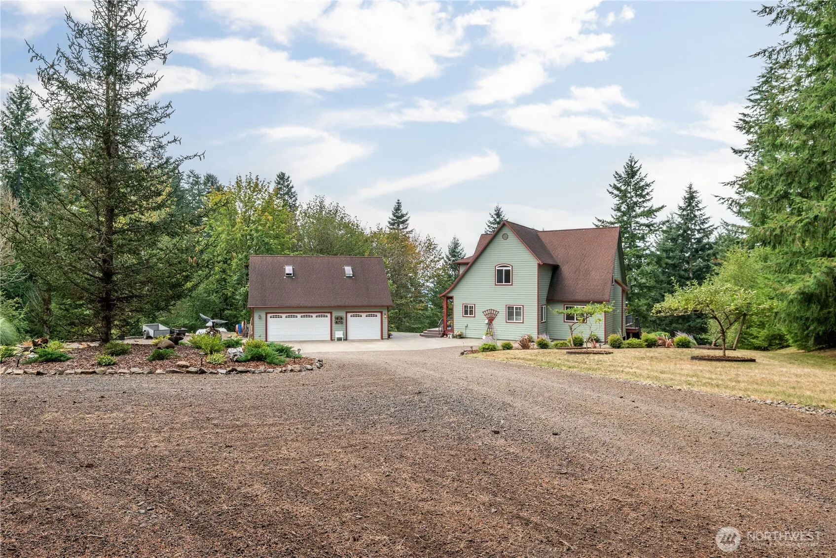 Serene and Stunning 4 Bed, 3.5 Bath home on 2+ acres about 4 miles off the White Pass Scenic Byway. 3123sqft boasts many amenities: picture Windows, large wrap-around Deck, expansive Patio with both covered and open areas, Gourmet Kitchen, high-end Appliances, Custom walk-in Pantry, Primary Bedroom with a picture perfect view and walk-in Closet, 3 car Garage with finished Office and Bonus rooms above, newer (2022) 3-zone Heat Pump, Tankless Water Heater, a full Propane Tank w/ sensor, a Well with submerged Pump & brand new Control Panel – and home is wired for Generator. Huge BONUS is the downstairs ‘Guest Suite’ (Airbnb?) and the VIEWS from inside and out! This Private Retreat is a perfect blend of calm living and modern comforts!