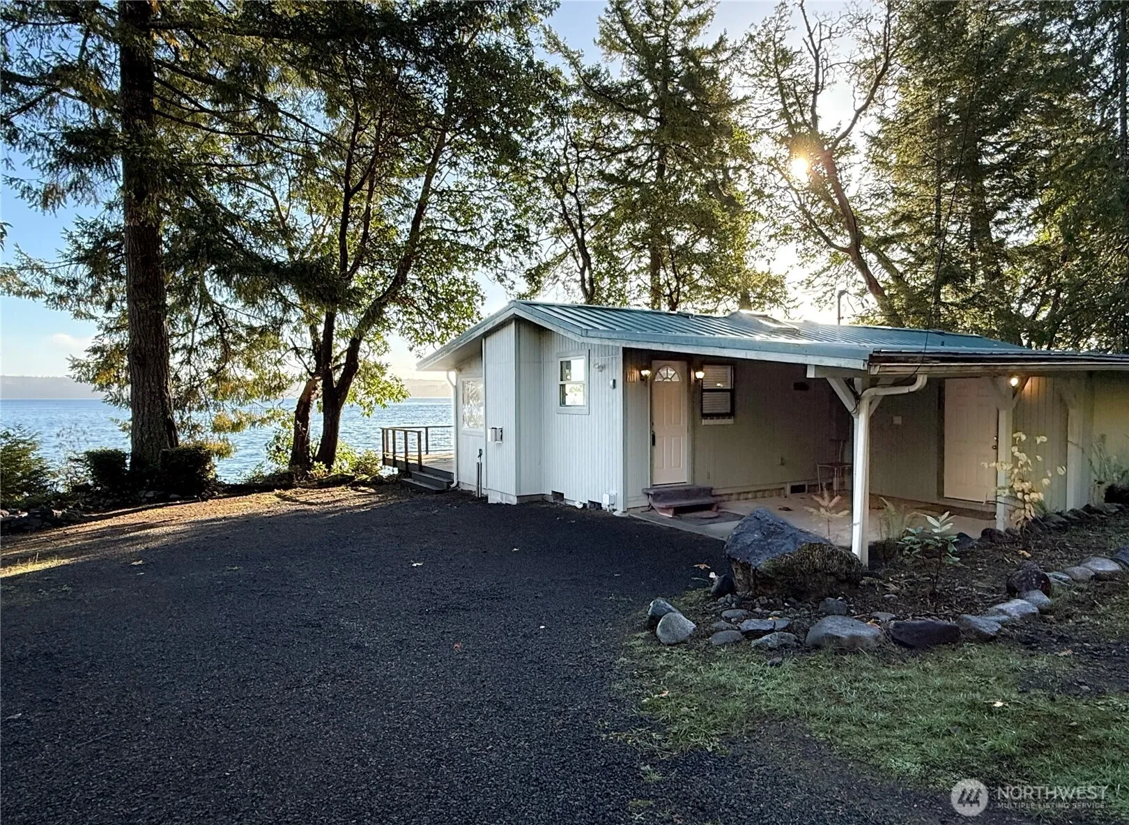 Very cute waterfront home available, but the real prize here is the rare opportunity to own 252+/- feet of Hood Canal waterfront property with concrete block moorage, stunning views & tons of potential. Enjoy breathtaking views of Hood Canal, Dabob Bay, and Mt. Rainier. Private shoreline access is available at both ends of the property, where you can enjoy gathering shellfish or exploring. The home itself features comfortable living spaces, a spacious primary bedroom with deck access, & a guest room with private entrance and its own bath. An RV hookup is available at the south end of the home as well. Included in the sale is the triangular piece of land across the street that has septic laterals installed & a convenient driveway turnaround.
