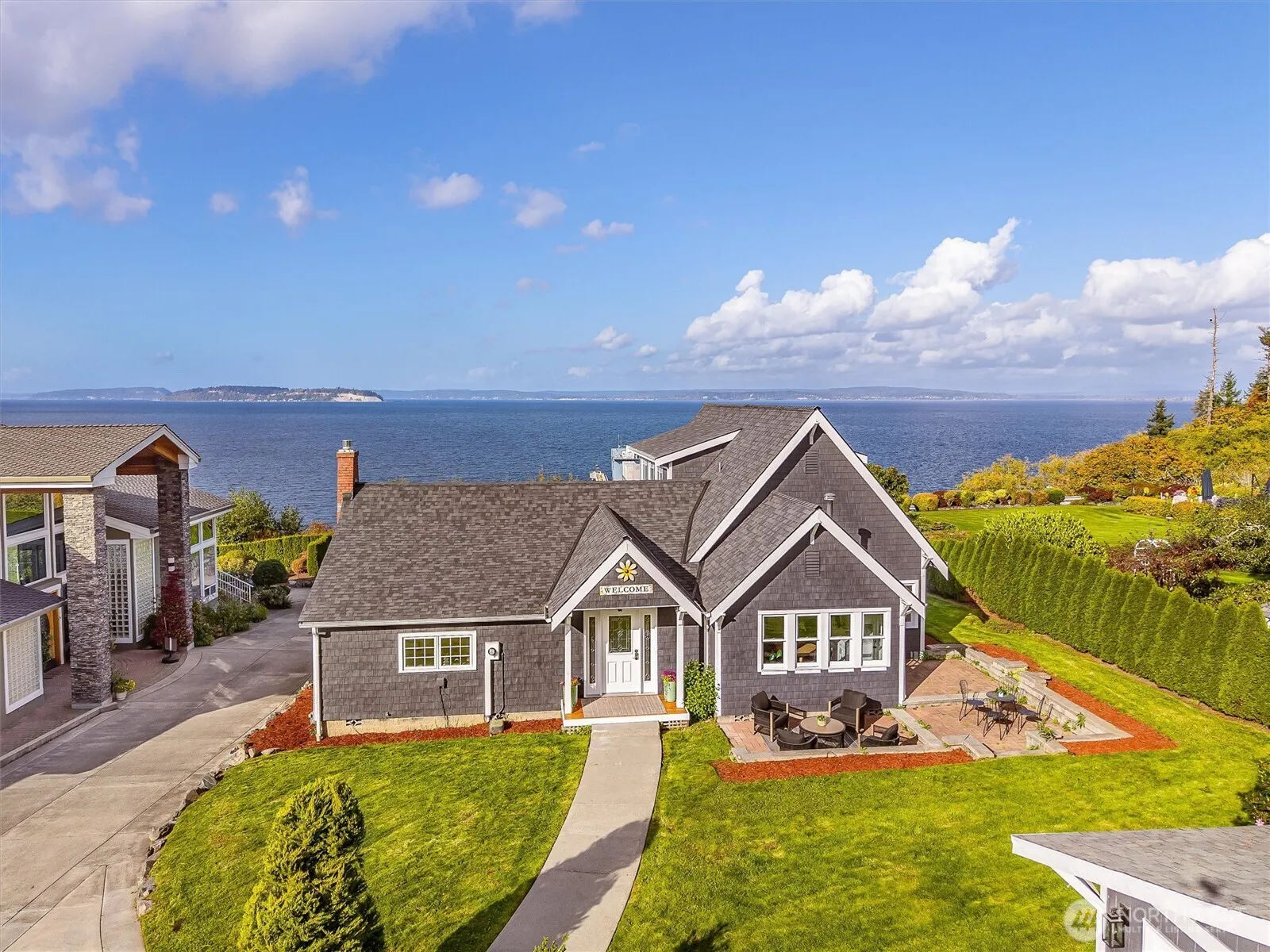 Perched above the Mukilteo waterfront with sweeping 180° views of Puget Sound, Whidbey Island, and the Olympic Mountains, this timeless 1905 Cape Cod has been completely renewed inside and out. Every detail reflects quality with updated systems, new finishes, and preserved period charm. The light-filled main-floor primary suite opens to a spacious front deck, the perfect spot to take in ferries, eagles flying by, vivid sunsets, and sparkling water views. Landscaped grounds, detached two-car garage, and a prime Old Town location surrounded by distinguished homes make this a truly rare find in Mukilteo.