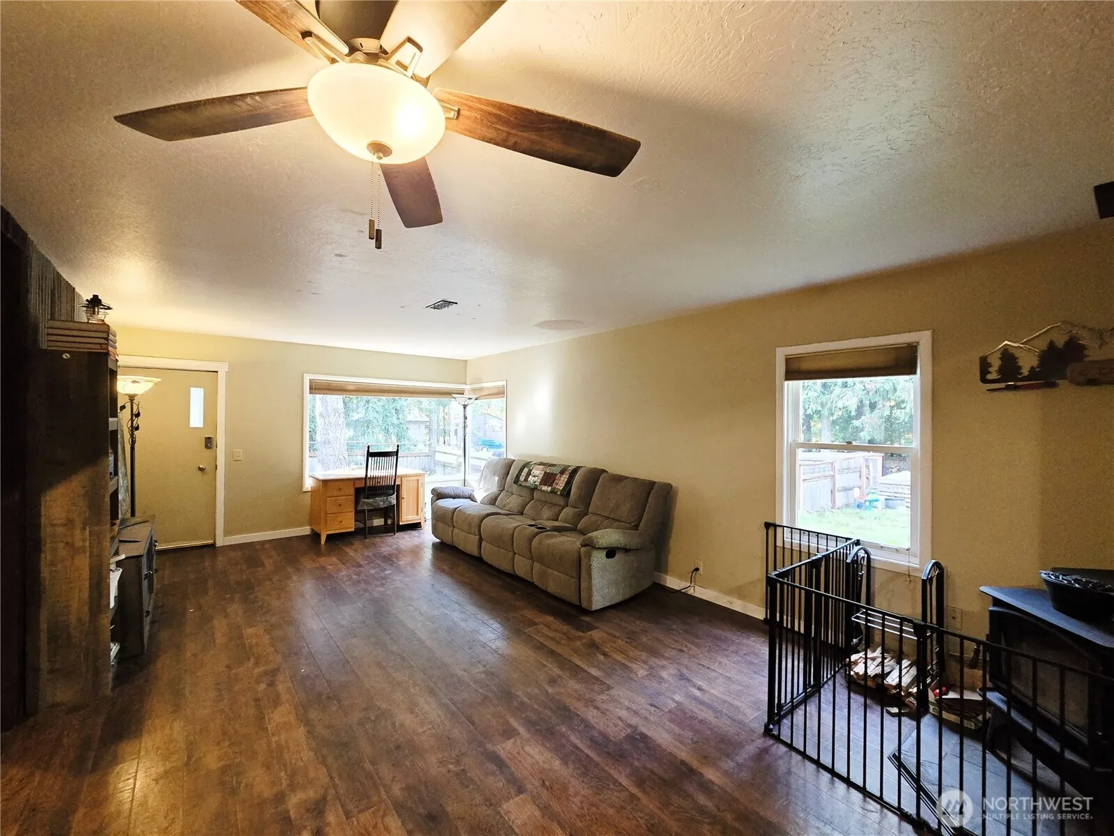 Charming home on almost a half acre. Fully fenced and conveniently located between Sequim & Port Angeles in the Deer Park area. Featuring a brand new roof w/30 year warranty & a new woodstove. Ductless heatpump provides efficient heat & A/C. Live edge wood & metal accents, main level bedroom and full bath with private primary suite with oversized half bath upstairs. Covered wood storage behind the house as well as 2 storage sheds providing ample space for tools, yard equipment and more. Fully enclosed chicken run and coop with easy, no-enter feeding system and egg collection. Level space for gardening and gathering around the firepit. Nestled between several Pacific Northwest copses, this home is a serene retreat for every day living.