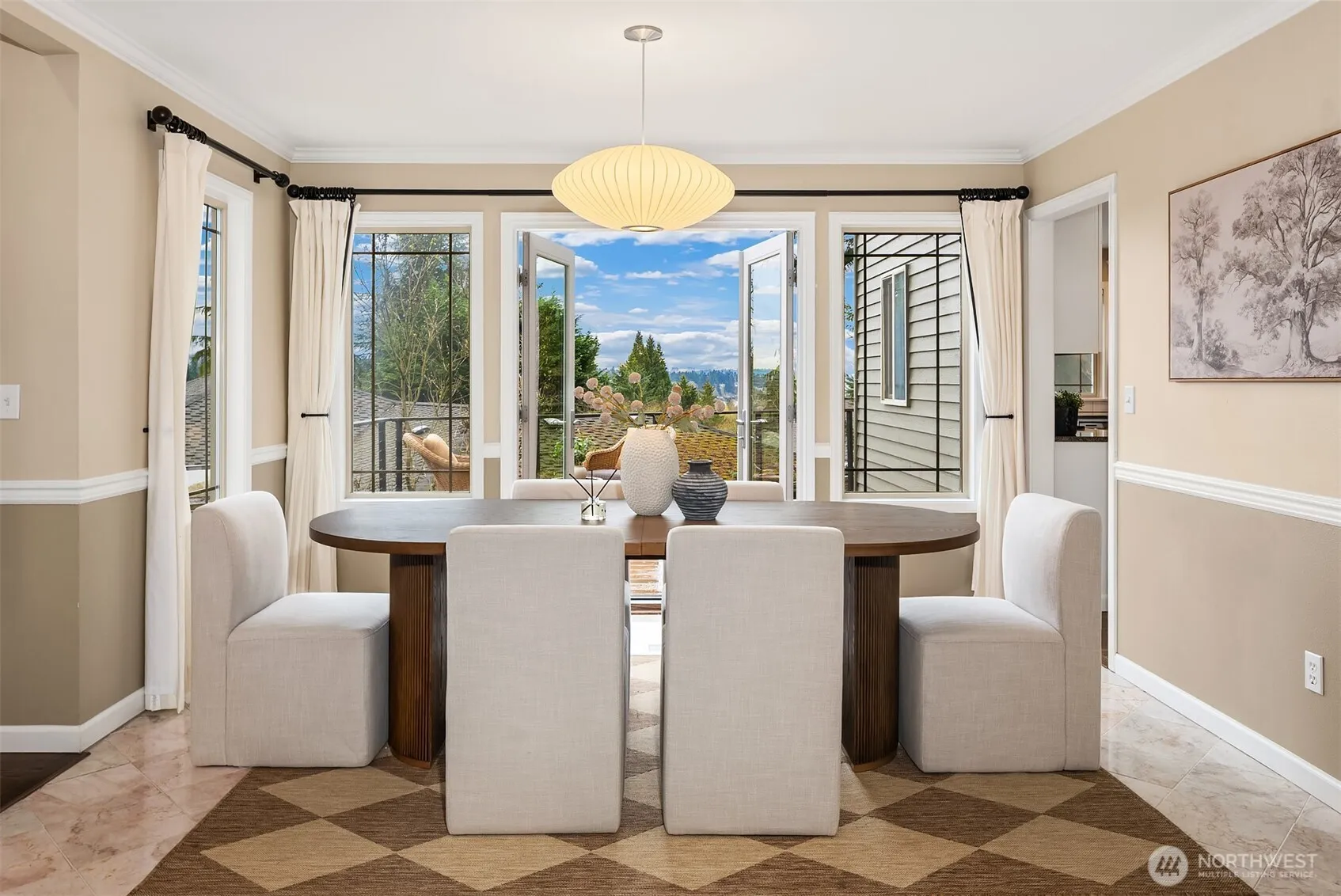 Nestled at the end of a peaceful cul-de-sac in the desirable Hazel Lane neighborhood, this light-filled home captures sweeping views of Mount Rainier, Lake Washington, and the city skyline. Step inside to soaring ceilings, hardwood floors, and expansive windows drawing your eye through the living spaces to the deck and breathtaking vistas. The main floor features a thoughtfully designed kitchen w/ a generous island, a cozy living room anchored by a fireplace, an office, & a dining area with French doors opening to the deck-perfect for entertaining or peaceful mornings overlooking landscaped gardens.The upper level lives like a classic three-bedroom home with all primary living spaces connected. The primary suite offers a sitting nook, spa-inspired bath, walk-in closet, & incredible mountain & lake views, while two additional bedrooms are bright and spacious, sharing a full bath with access to a second deck. The lower level features a fully finished, permitted 2-bedroom ADU w/ private entrance, offering flexibility for guests, multigenerational living, rental income, or a private workspace. Easily integrated or enjoyed independently, the space enhances versatility while preserving the comfort & flow of the main residence. Move-in ready, pre-inspected, & turnkey, this home offers elevated views, flexible living options, and exceptional indoor-outdoor living in a remarkable Pacific Northwest setting, just moments from Juanita Beach Park, lakeside trails, and downtown Kirkland.
