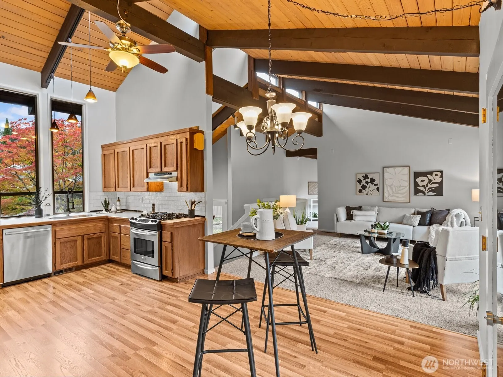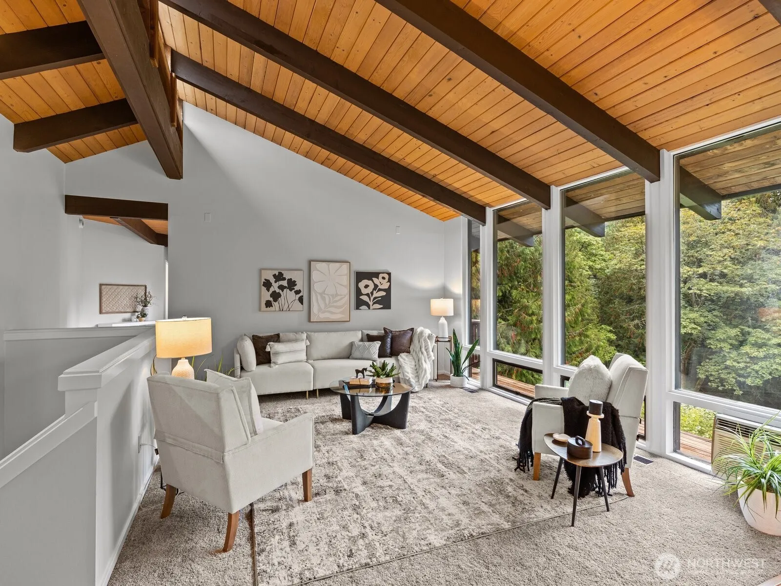 Idyllically located in the prestigious Brae Burn community, this cul-de-sac home showcases views of the 5th hole green. Large windows throughout provide ample light, while the plush carpet gives warmth to the space. Ideal for multigenerational living, both levels feature a spacious kitchen and separate laundry. Upstairs, the kitchen is flanked by 2 living areas and down the hall leads you to the bathroom and bedroom with great walk-in closet. Downstairs, a pass-through bathroom separates the large living room and bedroom. Multiple decks allow you to connect with nature or take in a round of golf. A detached garage with tons of storage space, and easy access to Bellevue, Redmond and 405 round out this great opportunity. Come make it yours!