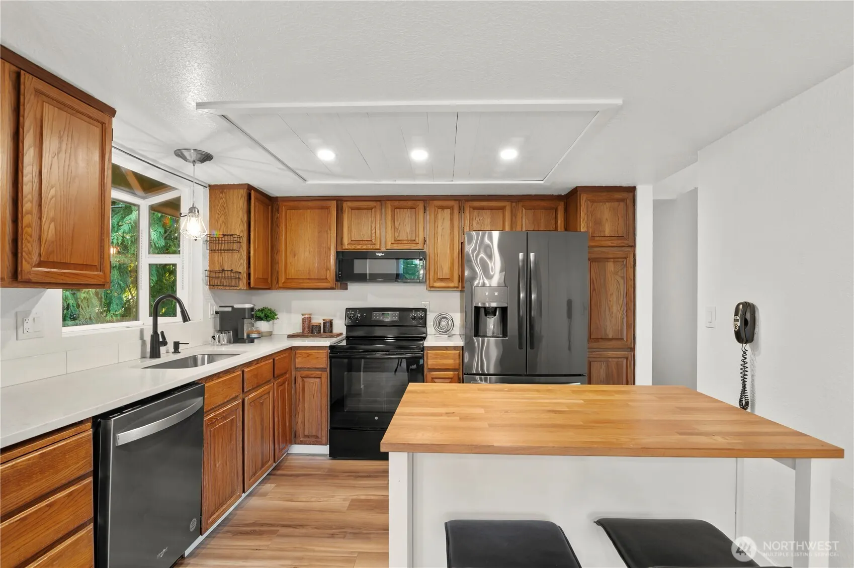 Stunning home in quiet cul-de-sac, airy interior features include vaulted ceilings, tons of natural light. New calcutta quartz kitchen counters, updated bathrooms & fixtures. Premium laminate hardwood’s and carpet throughout, fresh exterior & interior paint! Sizeable ensuite primary bedroom plus 2 additional beds on main level. Spacious 2nd bedroom on lower-level. Great bonus room space or additional living space for guests/tenants! Spacious private yard, fully-fenced, deck perfect for entertaining. Large 2-car garage, ample parking. Top-rated schools! Easy access to I-5, convenient transit, walkable to LIGHT RAIL station, Interurban/Burke-Gilman Trail, shopping & parks!