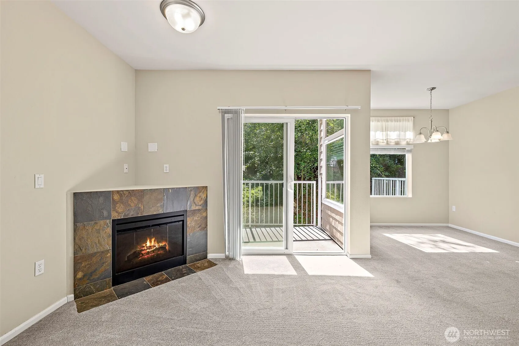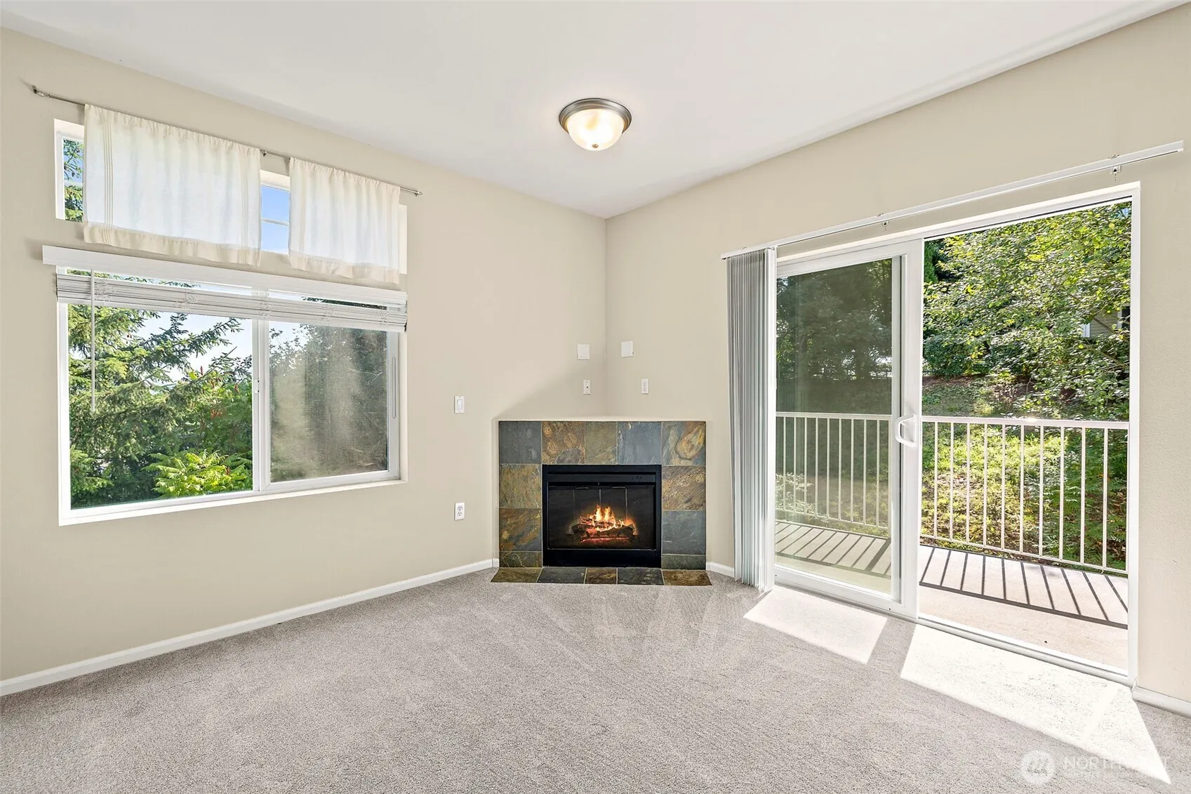 One of the BEST view homes in Riverview! This desirable end unit backs to a peaceful greenbelt and boasts panoramic valley and mountain views from nearly every room. A treehouse type sanctuary close to all the amenities of life. A no-steps, handicapped-accessible layout features 2 bedrooms, 2 full baths, a bright open floorplan with cozy fireplace, sunny deck, and kitchen with stainless appliances and garage entry. The primary offers a large walk-in closet and soaking tub. With new roof, hot water heater, newer paint, and built-in sprinklers, this home shines! Tranquil wooded setting yet minutes to SeaTac, light rail, and Seattle. Plenty of guest parking—an amazing chance to own in sought-after Riverview!