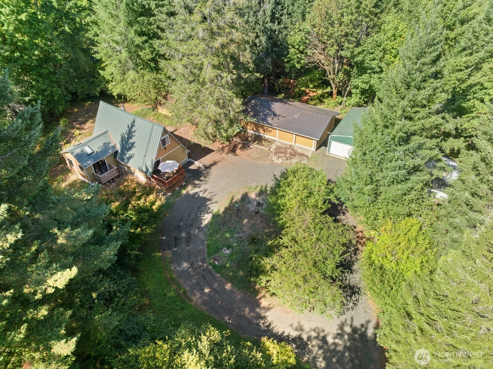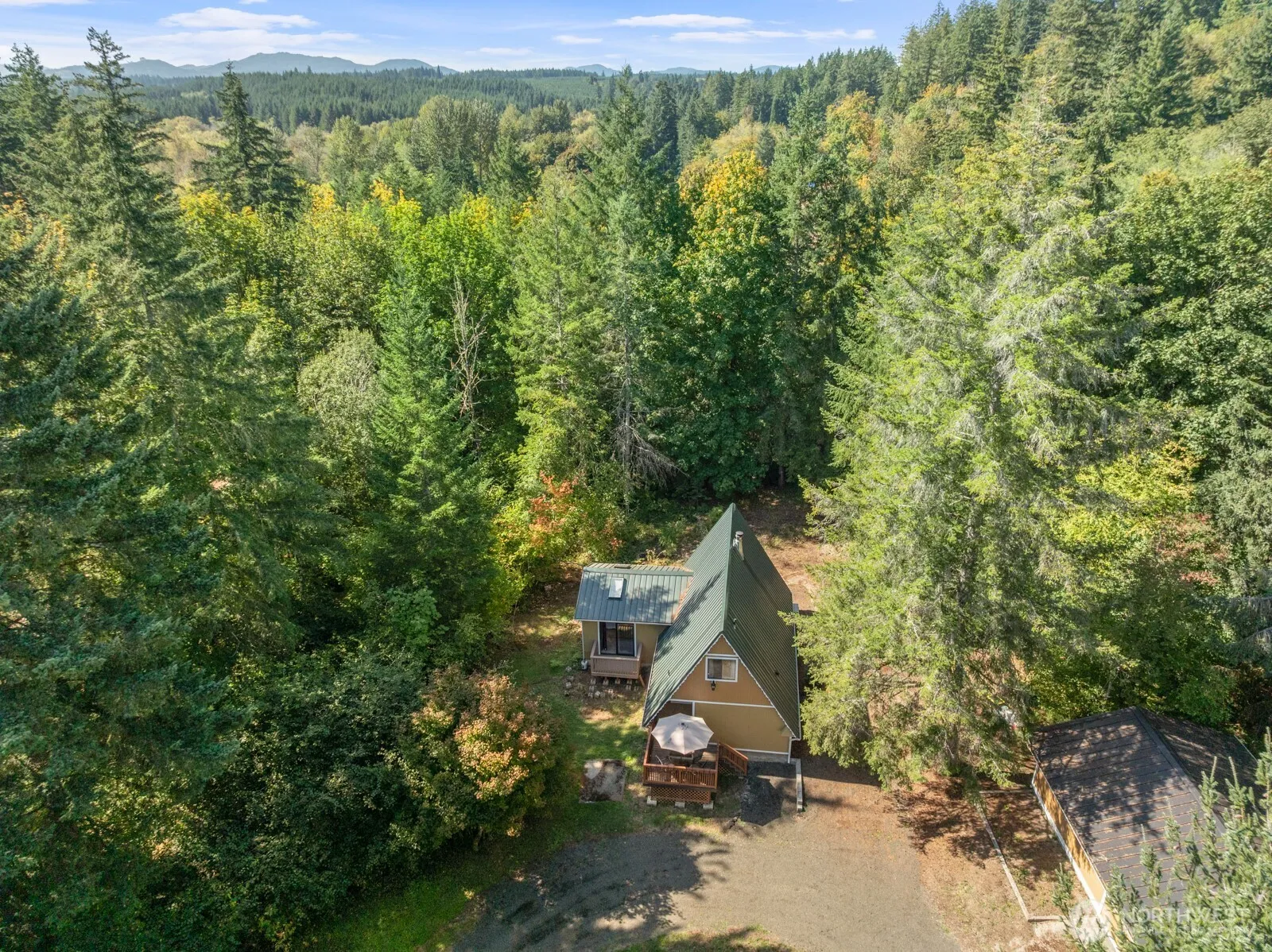 Tucked away among towering trees, this charming A-frame cabin sits on a spacious private 5-acre parcel your perfect retreat from the hustle & bustle. This property features multiple outbuildings, shops, garages & sheds. A circular driveway offers easy access & numerous trails to explore on foot, bike, or quad. With space for everything, this is outdoor living at its best. The main level welcomes you with a cozy living room featuring a wood-burning stove. The bedroom is filled with natural light & opens to a newly built deck—perfect for a hot tub under the stars. Updated bathroom & a open-concept kitchen with a hidden cellar tucked beneath the pantry floor. Climb the custom-built winding staircase to discover a well-sized loft & half-bath.