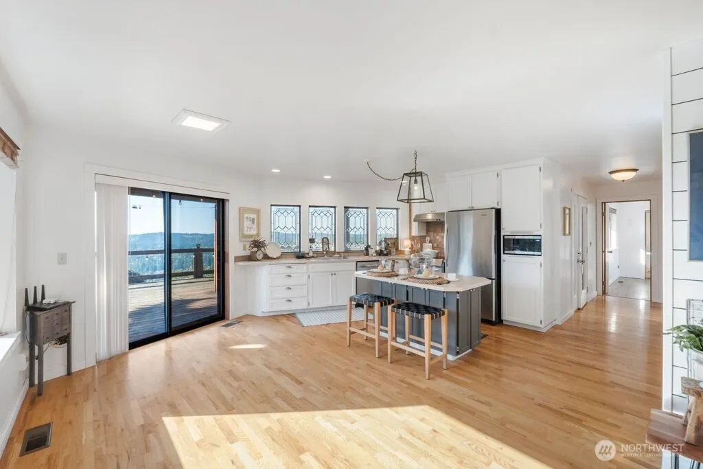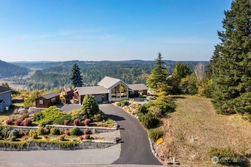 This mountain retreat home is so unique. It was built and positioned on the lot to capture each sunrise and sunset from inside windows. Year-round natural light throughout home. Has a panoramic view of Mt. Rainier in front w/ equally amazing views in back (territorial, valley & Ohop Lake in the winter). Primary bedroom on main level w/ updated bath, newer tile and countertop. Updated kitchen. A loft, wood flooring, a secluded patio, two large wood sheds, garden space, RV parking, heat pump, mature landscaping w/water feature. Has a one bedroom attached dwelling that would be perfect for generational living or an airbnd. The beauty that surrounds this home year-round is breathtaking, a must See!!