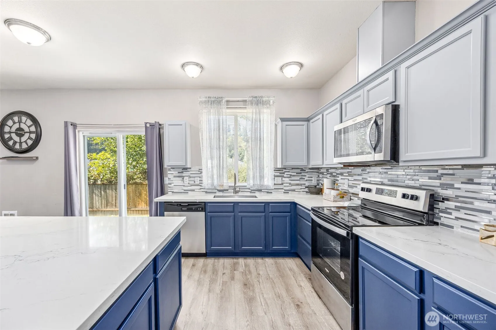 Instant equity! Paint and carpet upstairs and its ready!! Townhouse style condo with NO HOA!!!! Beautifully remodeled kitchen with large center island opening up to living room. LVP downstairs along with 1/2 bath. Upstairs are the 4 large Bedrooms including the primary with full bath! Full size washer and dryer included. 1 car garage with plenty of storage. Backyard is fully fenced with patio. Low traffic street with elementary school bus stop 1 block over . Close to Haggens and Safeway and easy on and off HWY 167. Interurban trail and parks just steps away! Home warranty included for your convenience. Make an offer-sold as is.