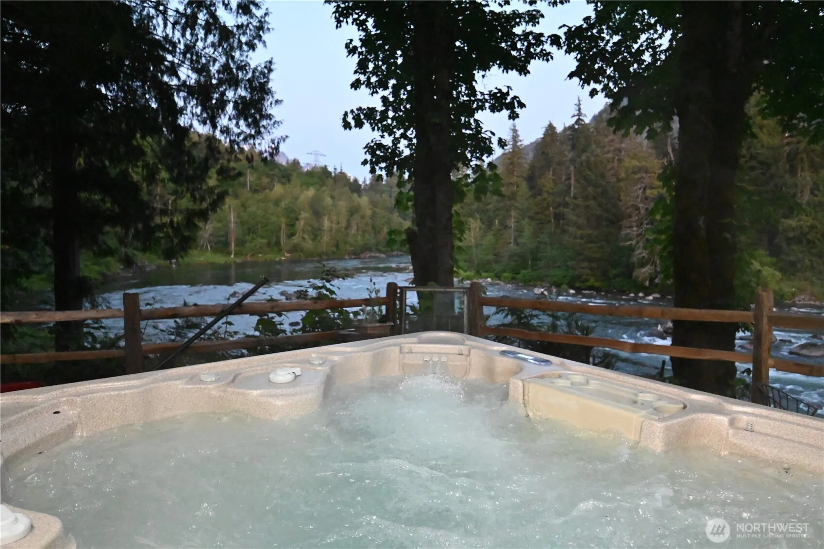 WATERFRONT MTN VIEW PROPERTY ~ 130 ft of prime riverfront on .73 acres. This private retreat includes two charming cabins. {Cottage} open concept, lg picture windows, kitchen, 1/2 bth, antique gas stove, wood stove, hot tub and spacious deck w/stunning views. {Bunkhouse} a versatile cabin w/full kitchen, 1/2 bth, 2 flex rooms, live edge bar, view deck(s) ideal for guests. Detached washhouse. Conex offers 20′ apt/20′ storage. {2} EV charging/RV/tent spaces/tons of parking. Home to WORLD-CLASS recreation!