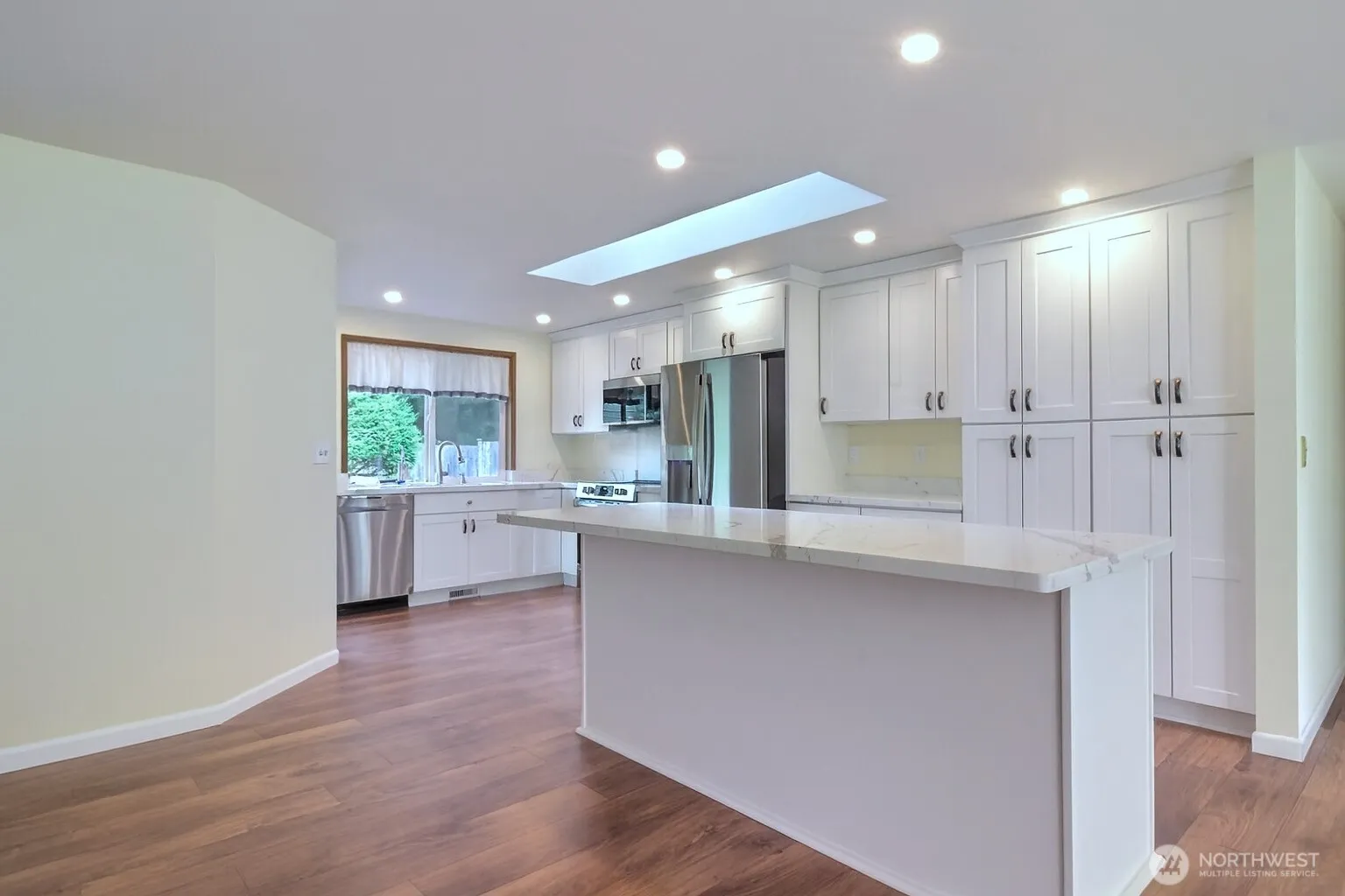 Location, Location, Location! Close to restaurants, shopping, medical facilities, freeway access and the historic downtown Gig Harbor waterfront. The beautifully updated kitchen (2023) is a cook’s delight with Quartz counters and large Quartz island, stainless appliances and a built-in pantry wall of cabinets. The kitchen opens to the living room with vaulted ceilings, large windows that bring in the natural light and a fireplace to keep you warm on our cool fall/winter evenings. vinyl plank flooring in living, dining, kitchen and hallway. Covered Trex decking (2024) is convenient for any type of weather, relax and enjoy the landscaped and fenced yard.